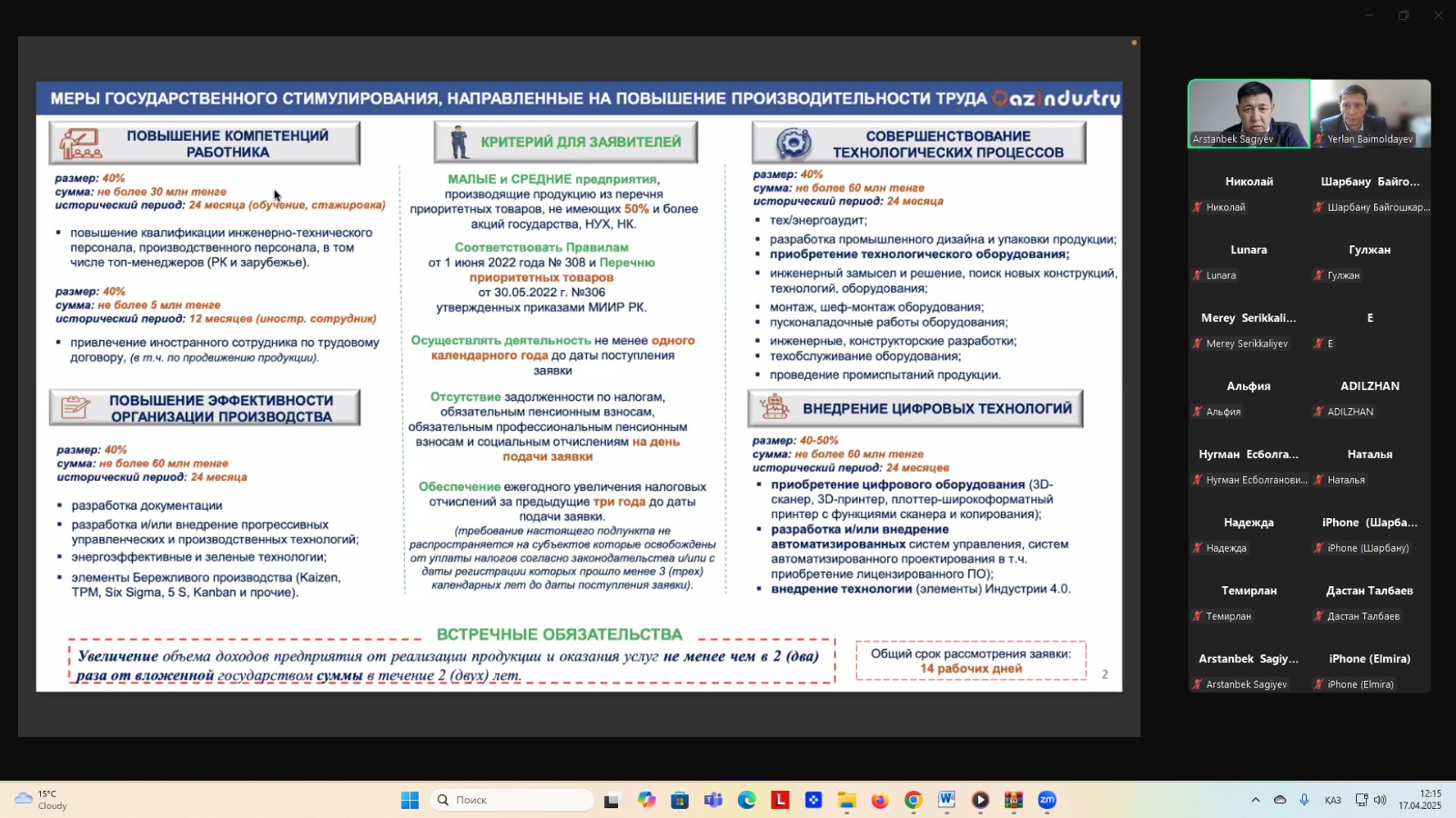 Семинар барысында спикерлер Географиялық нұсқаманы құқықтық қорғау және олардың аймақтық брендтерді дамытудағы рөлі, Инвестициялық шарт негізінде заттай грант беру, Салықтар бойынша жеңілдіктер, Инвестициялық субсидиялау және Мемлекеттік қолдау бағдарламалары мәселелерін туралы түсіндіріп өтті.