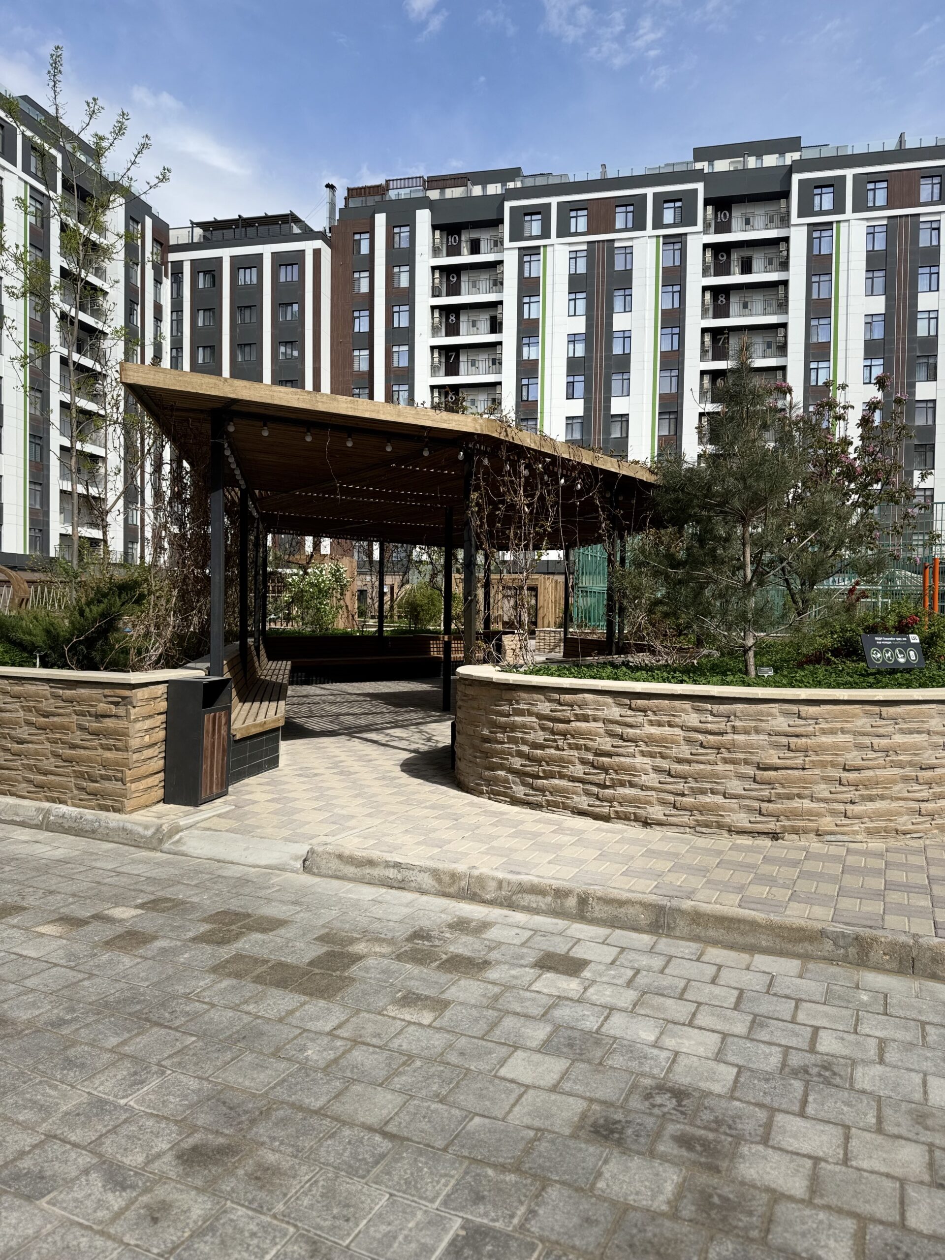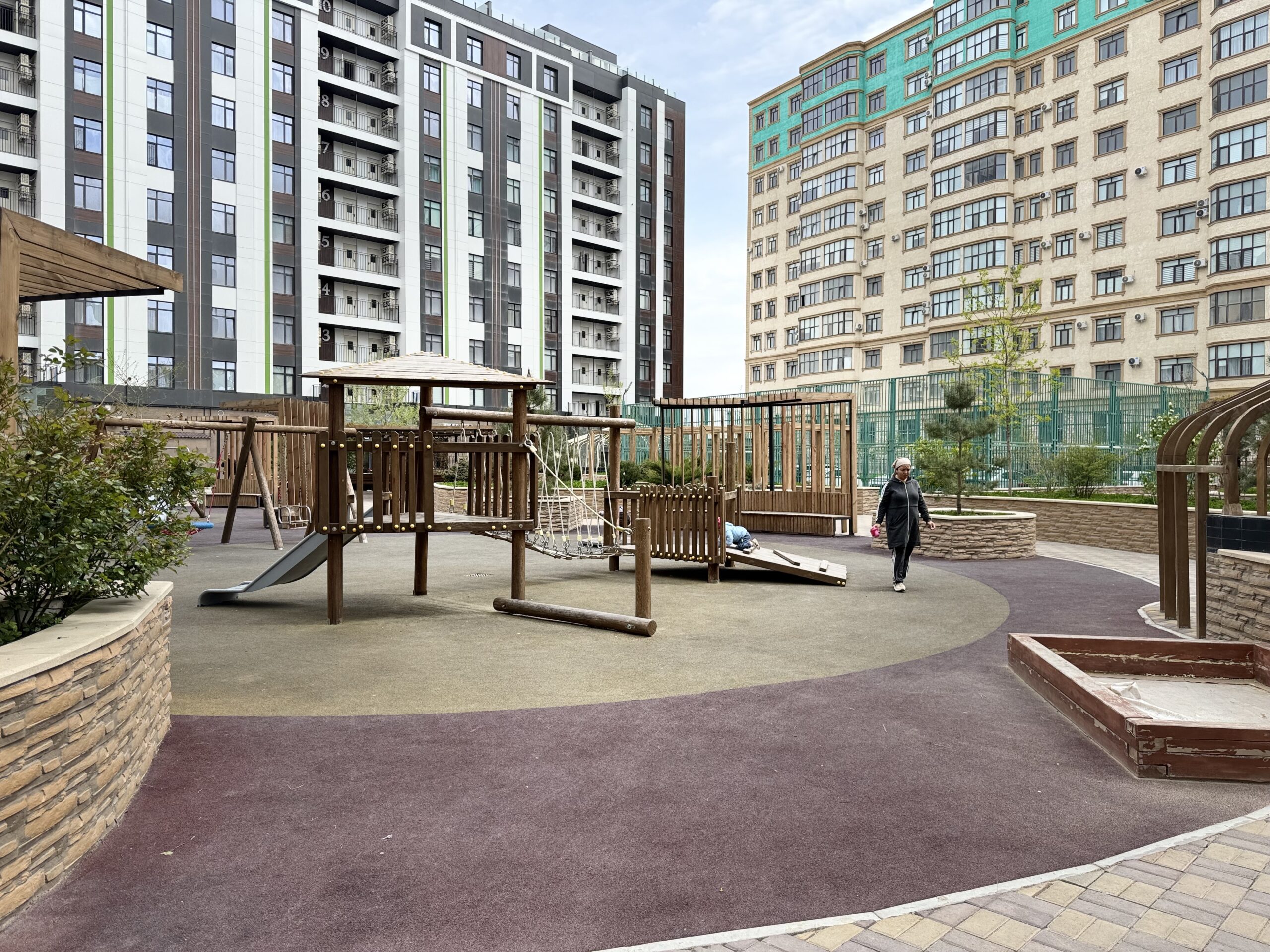 “Бүгінде аулада 30-дан астам түрлі өсімдік түрі жайқалып өсіп тұр. Барлық өсімдіктер тұрақты түрде бақылауда — олар апта сайын суарылып, күтім жасалады. Аулада жасыл желектерді суаруға арналған автоматтандырылған суару жүйесі орнатылған.” – дейді кешеннің көгалдандыру ісінің маманы.