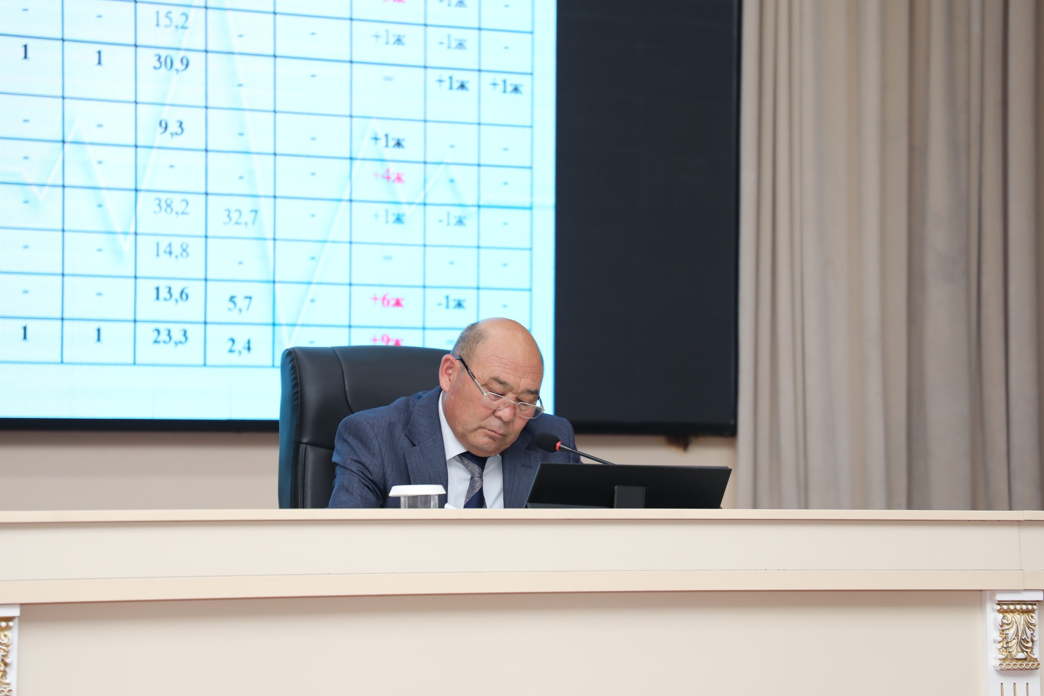 Күн тәртібіндегі бірінші мәселе бойынша аудандық санитариялық-эпидемиологиялық бақылау басқармасының басшысы Мұхит Әшірепиев және «Мырзакент» пен «Атакент» аудандық ауруханаларының бас дәрігерлері сөзге шықты.