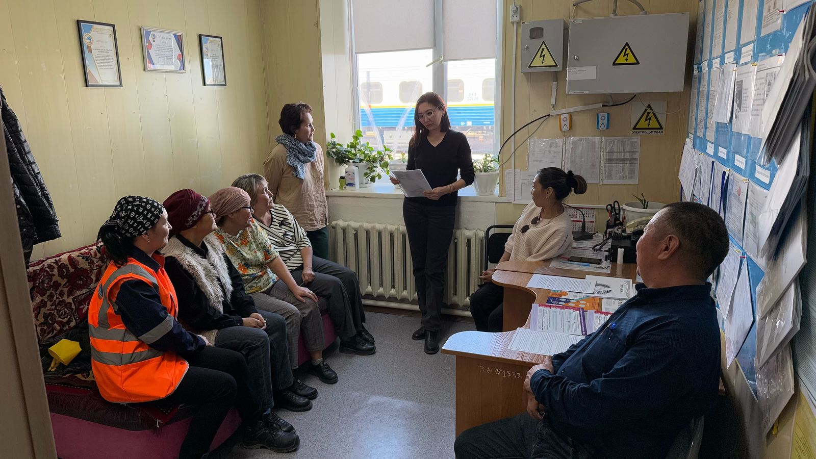 Халықтың санитариялық-эпидемиологиялық салауаттылығын қамтамасыз ету мақсатында Қарағанды бөлімшелік көліктегі санитариялық-эпидемиологиялық бақылау басқармасының мамандары Мойынты станциясында семинар форматында ақпараттық-түсіндіру жұмыстарын жүргізді.