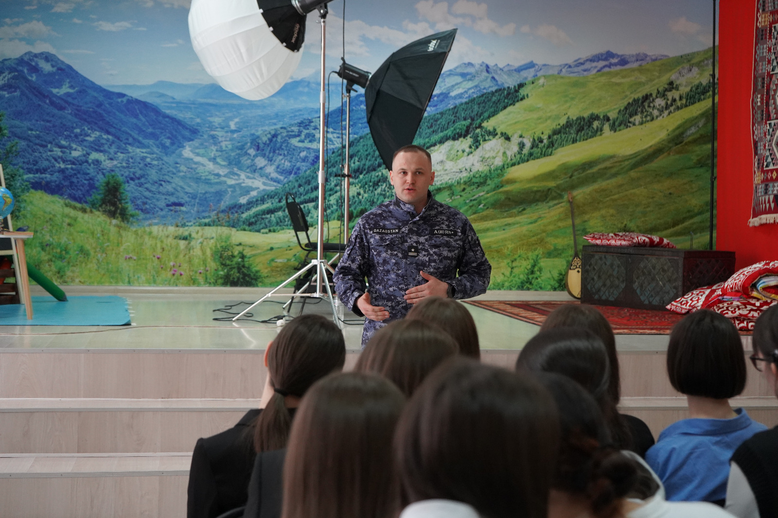 Сондай-ақ тәртіп сақшылары жоғары сынып оқушыларына полиция қызметі туралы бейнероликтер көрсетті, заң мен тәртіпті сақтау бойынша жұмыс туралы айтты. Әрбір адам өз өмірін қылмысқа қарсы күреспен байланыстырмаса да, олардың әрқайсысы құқық бұзушылыққа мүлдем төзбеушілік, құқықтық сананы арттырудың маңыздылығы туралы ойланғаны маңызды.
