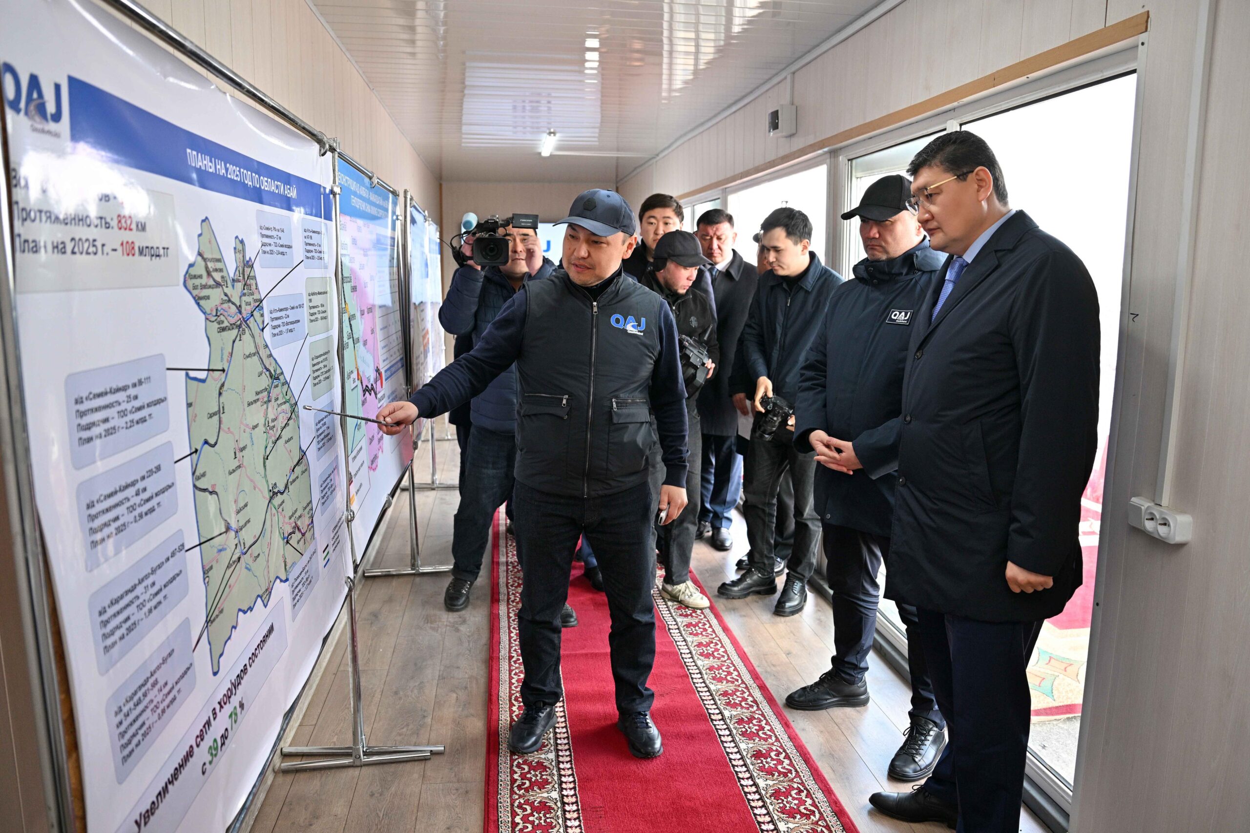 Облыс әкімі Берік Уәли «ҚазАвтоЖол» Ұлттық компаниясы» АҚ басқарма төрағасы Дархан Иманашевпен бірге реконструкциялау жұмысы басталған аумақты аралап көрді. Жол құрылысын жүргізіп жатқан мердігер компанияның өндірістік базасында болып, жұмысшылармен кездесті.