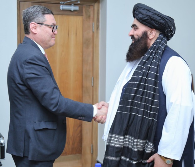 Қабыл, 2025 жылғы 14 сәуір – Қазақстан Республикасы Президенті жанындағы Қазақстан стратегиялық зерттеулер институтының (ҚСЗИ) директоры Еркін Тұқымов Ауғанстанға сапары барысында Ауғанстанның сыртқы істер министрінің м.а. Амир Хан Муттакимен кездесті.