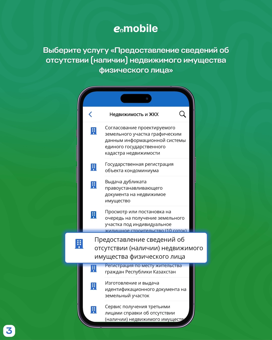 – «Ф-6 анықтамасы (жылжымайтын мүліктің болуы туралы)» анықтамасына өтінім беріңіз;