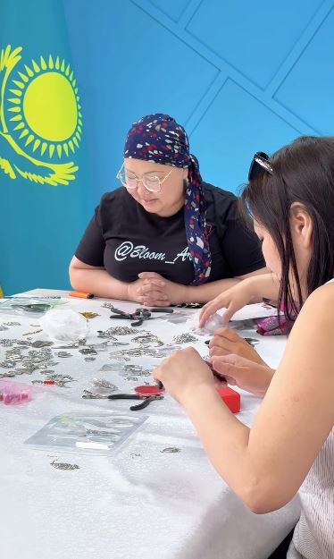 Қатысушылар дәстүрлі өнердің қыр-сырын меңгеріп, өз қолдарымен ұнаған әсем әшекейлерін жасады.