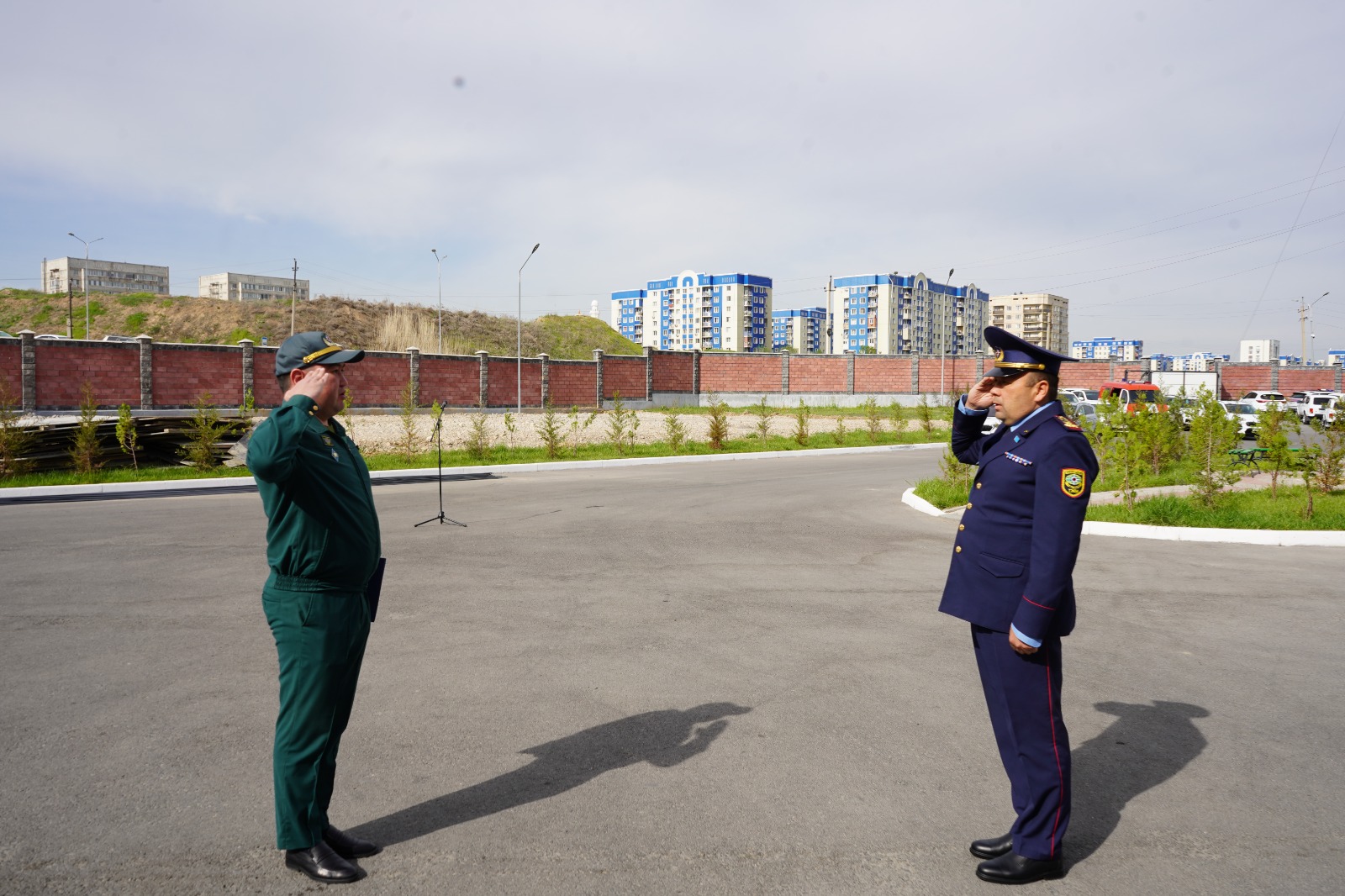 Шымкент қаласы Төтенше жағдайлар департаментінде жазғы киім үлгісіне өту аясында саптық байқау өткізілді.