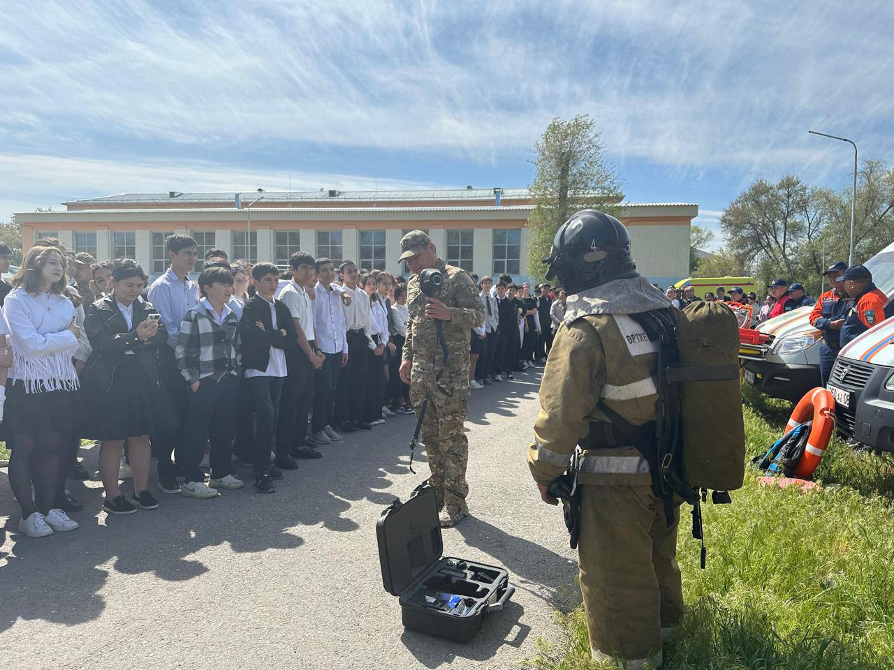 Іс-шара аясында қатысушыларға төтенше жағдай кезінде адамдарды құтқаруға арналған арнайы техника мен жабдықтардың жұмыс істеу принциптері туралы айтылды. Сонымен қатар, «Дабыл» белгісі бойынша мектеп ғимаратынан эвакуация жасау бойынша практикалық жаттығу ұйымдастырылып, оқушылар нақты қауіпті жағдайда жылдам және ұйымдасқан шығу дағдыларын шыңдауға мүмкіндік алды.