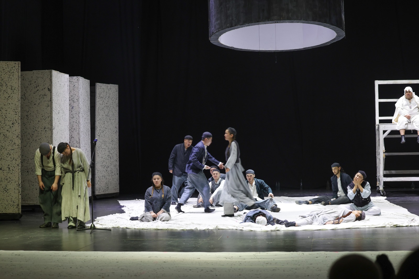 Қойылым Шәкәрім Құдайбердіұлының «Ұждан» атты әңгімесінің желісімен сахналанған. Спектакль адам баласының ар-ұяты, абыройы мен қадір-қасиеті туралы ой қозғайды. Қойылымның сахналық нұсқасын жазған – Нұркен Тұрлыбек, қоюшы режиссер – Азамат Ниғманов. Іс-шараға Сенат пен Мәжіліс депутаттары, жергілікті атқарушы органдардың өкілдері қатысты.