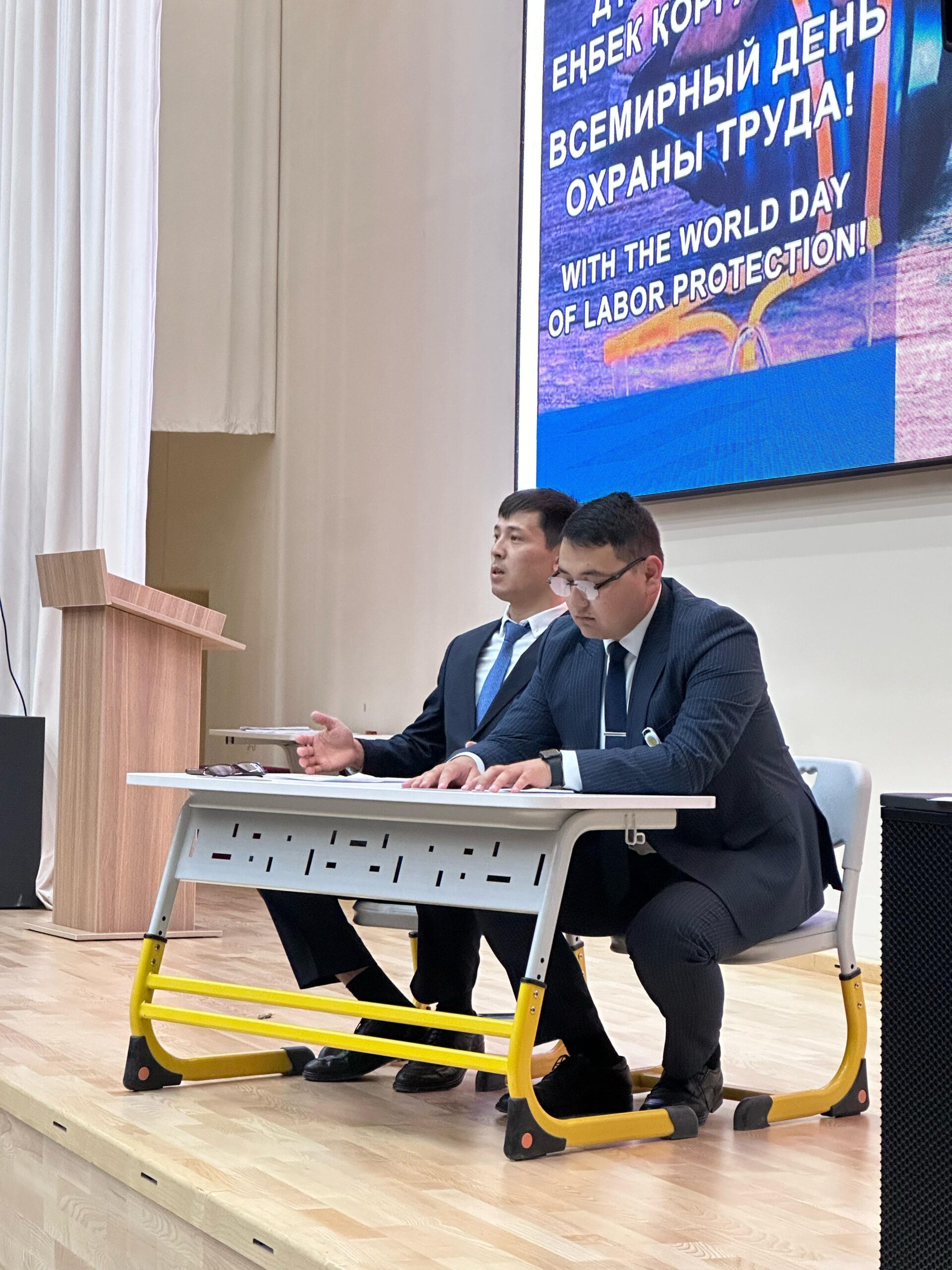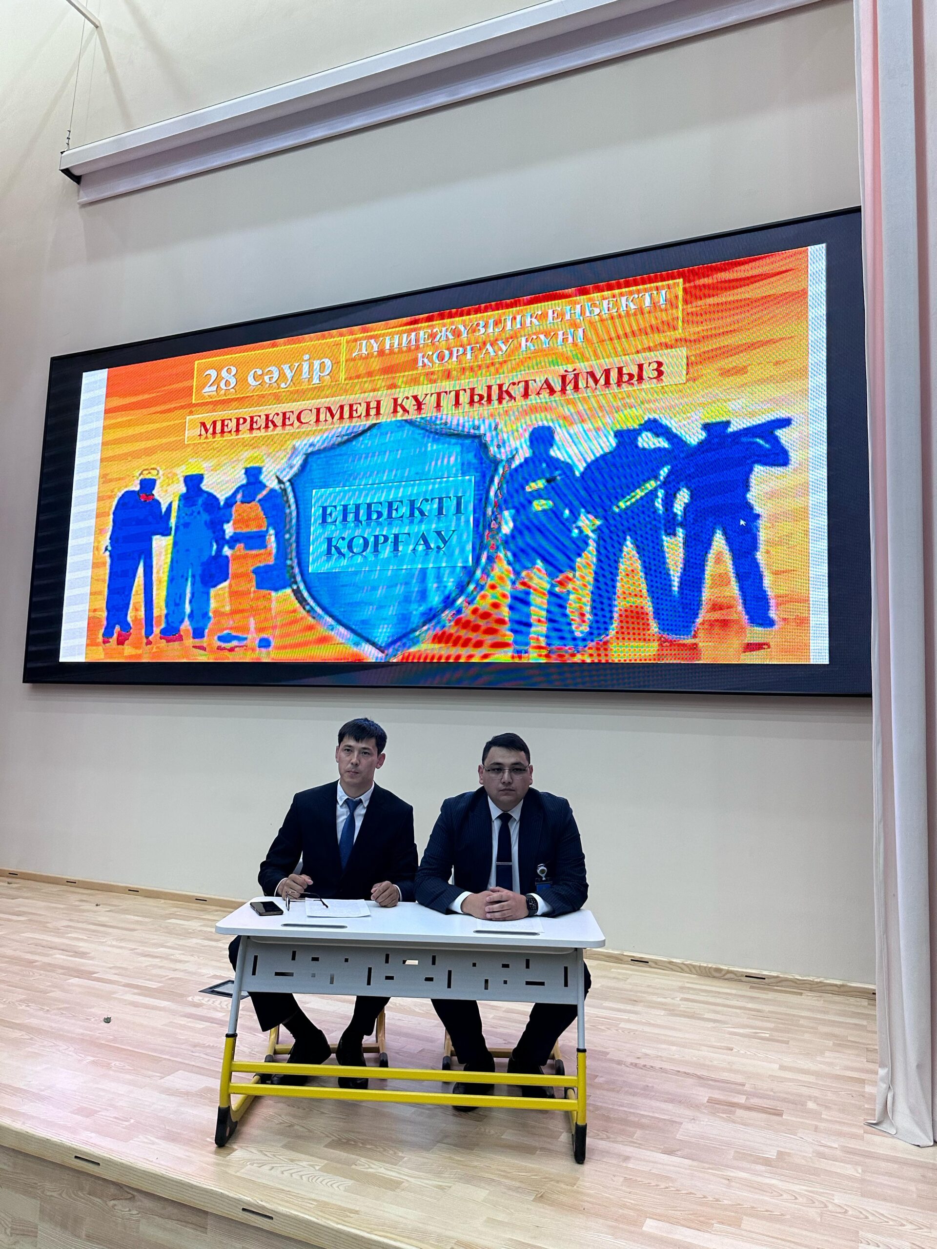 • Атап айтқанда: Түркістан облысының білім басқармасына қарасты Түркістан қаласында орналасқан «№33 жалпы білім беретін мектеп» КММ-нің бітіруші 11-сынып түлектеріне 2025 жылдың 18 сәуірінде Департаменттің мемлекеттік еңбек инспекторлары Ержанов Бекжан Ержанұлы және Қаңлыбай Ернұр Сейтқалиұлы “28 сәуір – Дүниежүзілік еңбекті қорғау күніне” орай жұмысшы мамандықтар жылының негізінде мамандық таңдауда “Еңбек қауіпсіздігі және еңбекті қорғау жөніндегі инженері, маманы”, “Өндірістегі еңбекті қорғау және гигиена” мамандықтарының адам өмірі мен денсаулығын сақтауда маңызды мамандық екені түсіндіріліп, осы мамандыққа оқуға түсіп, жоғары білім алып, осы салада жұмыс істеуге шақырып, жұмыс беруші мен жұмысшының арасындағы еңбек қатынастары, еңбек адамының рөлі, жұмыскердің құқықтары мен міндеттері, еңбек саласына қатысты заңдылықтардың реттелу жолдары, жазатайым жағдайлардың алдын-алу мақсатында атқарылатын жұмыстар бойынша дәріс өткізді.