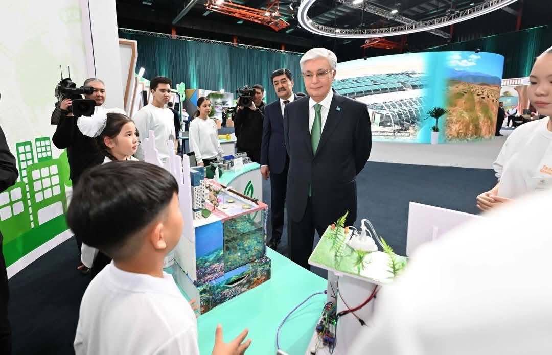 Қасым-Жомарт Тоқаев көрме экспозицияларын аралап көрді. Мұнда қоқыс өңдеу, өндірістік кәсіпорындар жобалары, табиғат тазалығы бойынша стартаптар, мектеп оқушыларының экологиялық бастамалары, сонымен қатар балалардың қоршаған орта тақырыбына арналған шығармашылық жұмыстары қойылған.