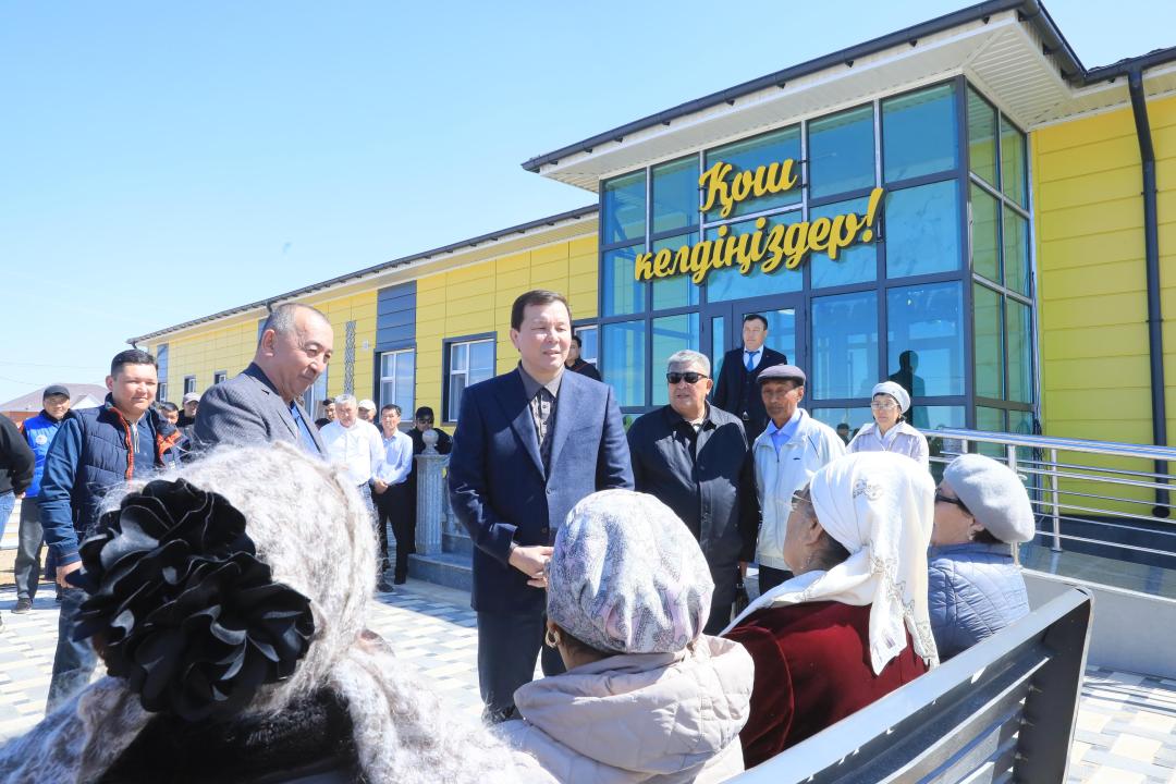 Аймақ басшысы апатты мектептің орнына жеке кәсіпкер салған жаңа білім ордасын көріп, жергілікті тұрғындармен кездесті.