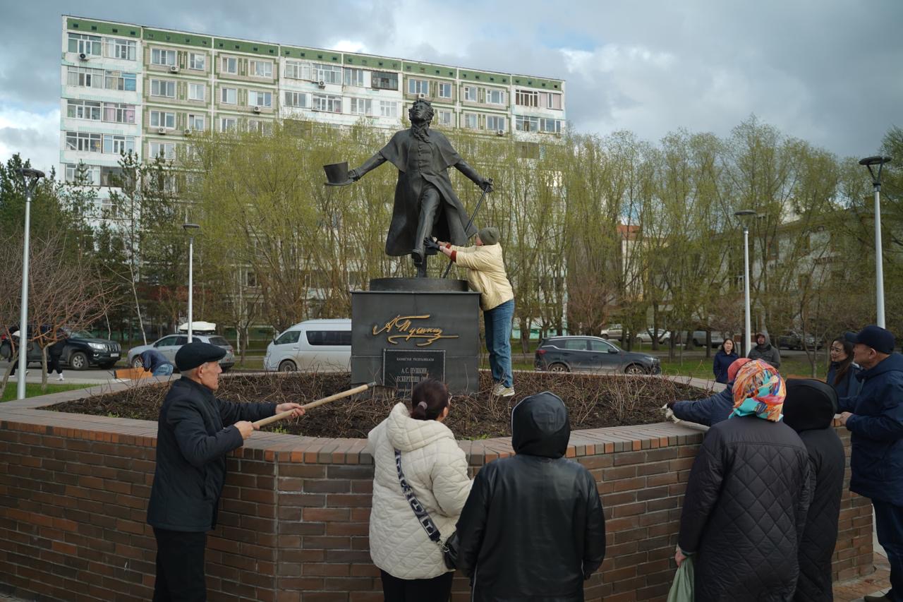 Музыкалық жас көрермендер театрының ұжымы Жәнібек Тәшенев көшесіндегі саябақтағы «Астана» мүсінінің айналасын қоқыстан тазартты. Ал М.Горький атындағы Мемлекеттік академиялық орыс драма театрының қызметкерлері Л.Гумилев атындағы Еуразия ұлттық университетінің жанында орналасқан Александр Пушкин ескерткішін абаттандыруға атсалысты.
