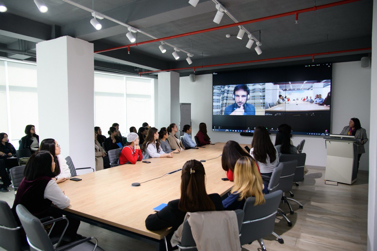 Кездесу барысында оқушылардың сұрақтарына жауап беріліп, тақырыптық бейнероликтер көрсетілді.