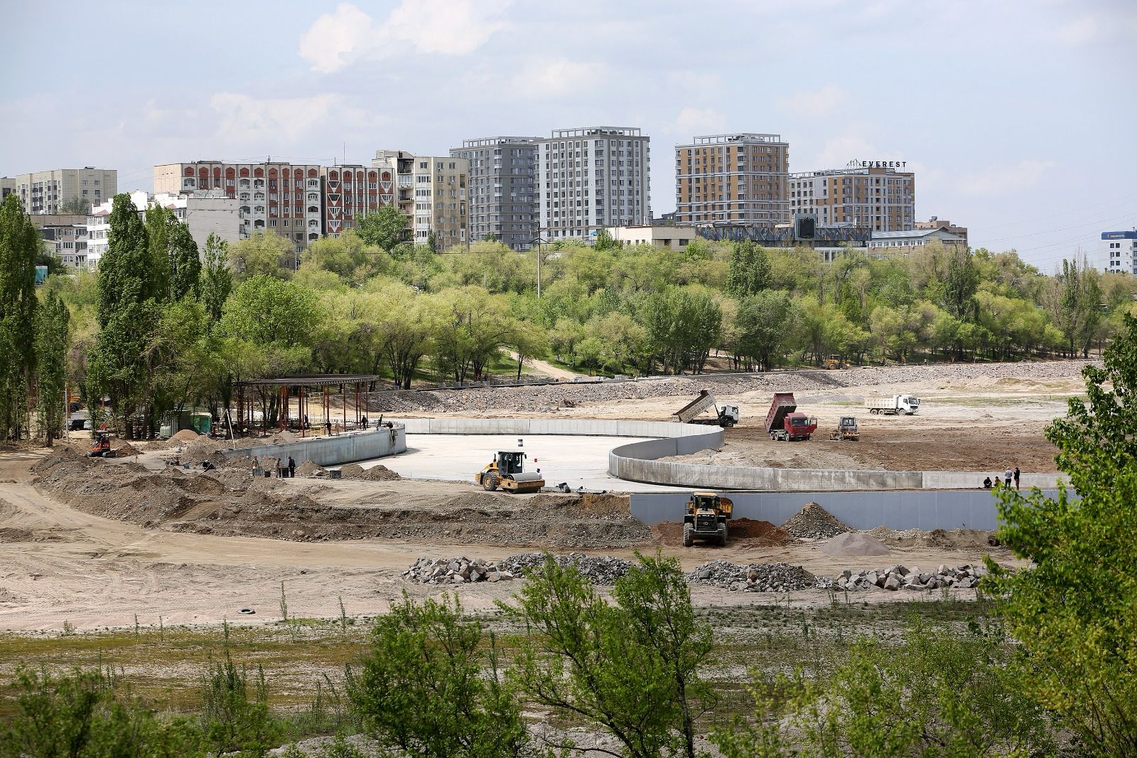 Жоба басшысы Ринат Зілмұхамедовтың айтуынша, нысанның дайындығы 90% – дан асады. Бүгінгі таңда жағалау сызығын нығайту, инженерлік желілерді төсеу және бөгет салу бойынша негізгі инженерлік және құрылыс жұмыстары орындалды. Қазір соңғы кезең жүріп жатыр — аумақты абаттандыру, шағын сәулет нысандарын орнату және көгалдандыру. Барлық жұмыстарды белгіленген мерзімде – ағымдағы жылдың мамыр айының соңына дейін аяқтау жоспарлануда.