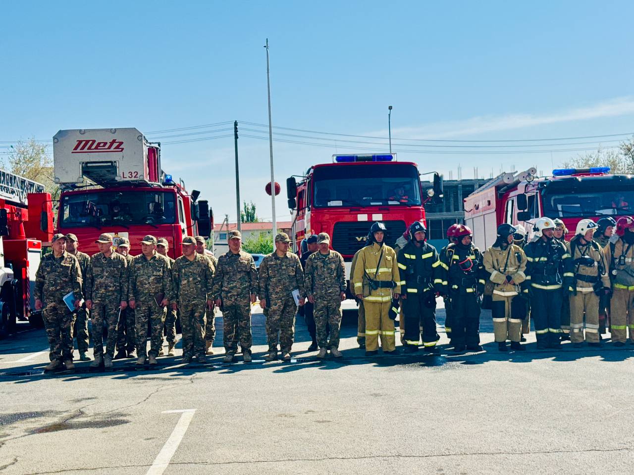 Шартты өртті сөндіру жұмысына Қызылорда қаласындағы 6 өрт сөндіру бөлімдерінен 10 негізгі өрт сөндіру автокөлігі, 4 арнайы автосаты, 1 авариялық құтқару автокөлігі, 1 штаб автокөлігі қатыстырылды. Сонымен бірге Жедел құтқару жасағынан 2 техникасымен 6 қызметкер, «Апаттар медицинасы орталығының» филиалынан 1 техникасымен 4 қызметкер, Жедел жәрдем бригадасынан 1 техникасымен 3 қызметкер, электр тораптарын таратудан 1 техникасымен 2 адам, «QazaqGaz Aimaq» АҚ филиалынан 1 техникасымен 3 қызметкер, жол-патрульдік полиция қызметінен 2 техникасымен 4 қызметкер жұмылдырылды. Аталмыш оқу-жаттығуға жалпы 24 техника, 93 қызметкер қатыстырылды.
