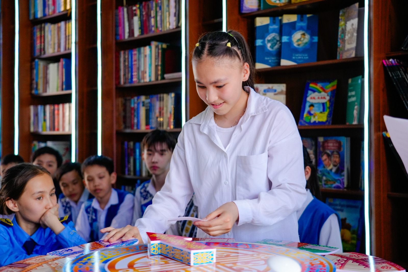 «Бүгін мектебіміздің оқушылары Ұлттық кітап күніне арналған викториналық ойынға қатысып жатыр. Бұл жай ғана сұрақ-жауап емес, бұл күн – білім, рухани баю және әдебиетке деген сүйіспеншіліктің мерекесі. Ұлттық кітап күні – кітап адамның адал серігі болып қала беретінін, оның ой-өрісін қалыптастыратын, талғамы мен ішкі мәдениетін дамытатын маңызды құрал екенін еске салады. Мұндай іс-шаралар балаларға шабыт беріп, олардың қазақ әдебиетіне деген қызығушылығын оятады.