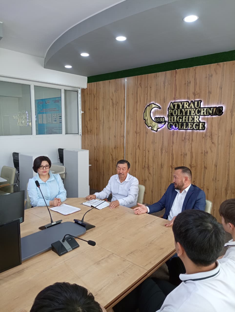28 сәуір – Дүниежүзілік еңбек қорғау күні және 2025 жыл – Жұмыскер мамандықтарының жылы деп жариялануына орай, бүгін Мемлекеттік еңбек инспекциясы комитетінің Атырау облысы бойынша департаментінің Еңбек қауіпсіздігі және еңбекті қорғауды бақылау бөлімінің басшысы міндетін атқарушы С.Т.Төлегенов «Саламат Мұқашев атындағы Атырау политехникалық жоғары колледжі» студенттерімен кездесті.