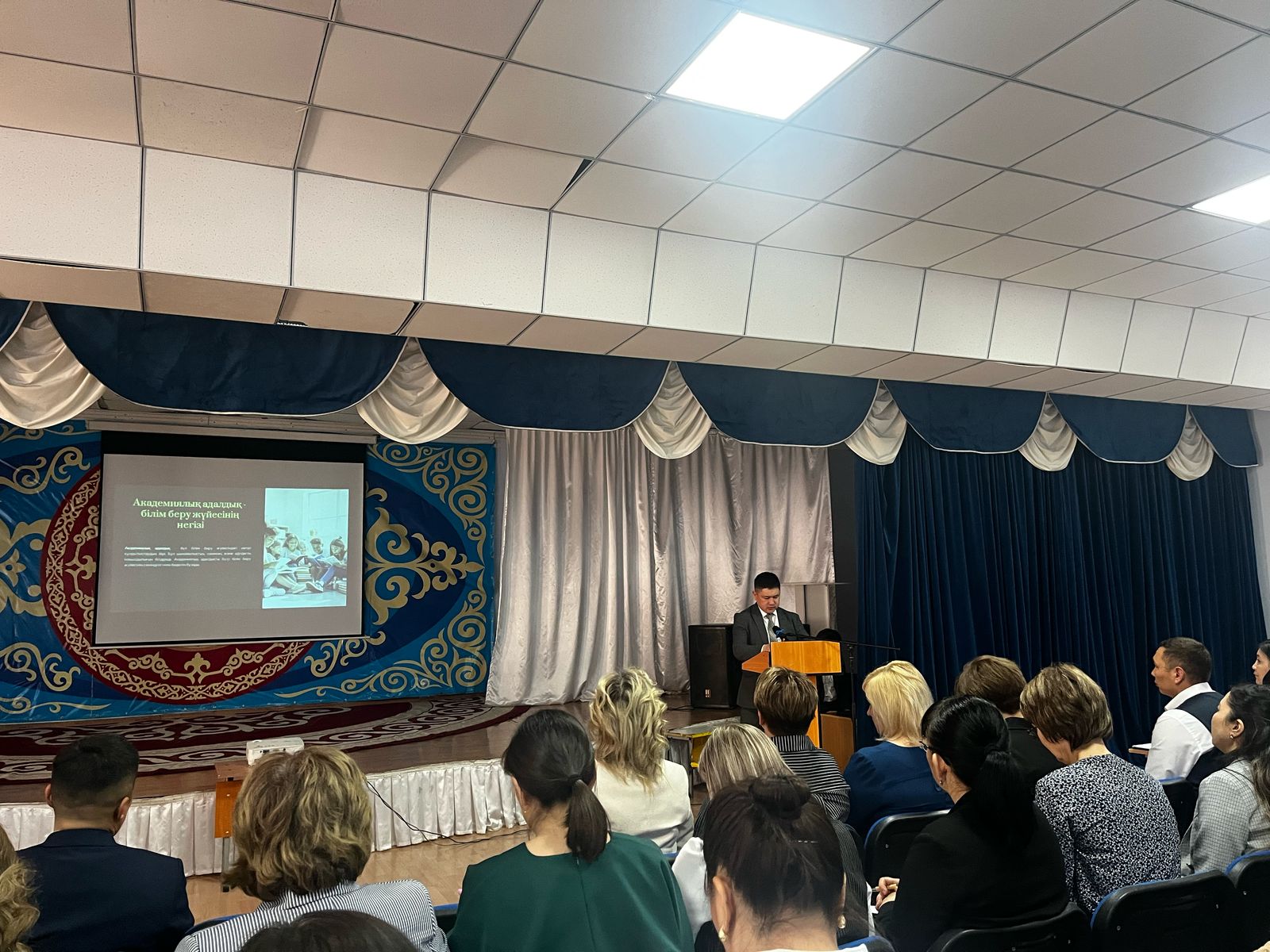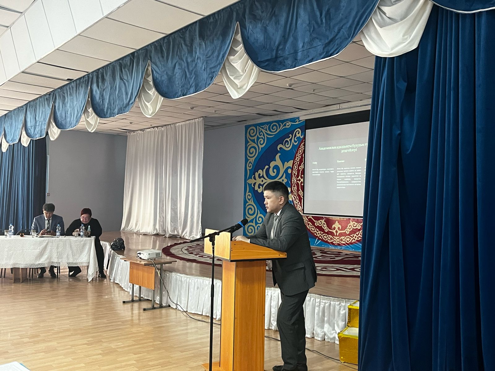 Шығыс Қазақстан облысының білім басқармасы ұйымдастыру жұмысы және адам ресурстарын басқару бөлімінің бас маман-заңгері Д. Калдыбаев білім беру ұйымдарында академиялық адалдықтың маңыздылығы және сақтау жолдары, академиялық адалдықты дамытудағы білім беру ұйымдары басшыларының рөлі, білім беру ұйымдарында сыбайлас жемқорлыққа қарсы мәдениетті қалыптастыру, электрондық цифрлық қолтаңбаны дұрыс қолдану, заң бұзушылықтың алдын алу, заңдамада көзделген жауапкершілік, білім беру ұйымдарында мемлекеттік рәміздерді Қазақстан Республикасының ҚР СТ 988-2007 мемлекеттік стандартына, ҚР СТ 989-2014 ұлттық стандартына сәйкестендіру бойынша түсіндірме жұмыстарын жүргізді.