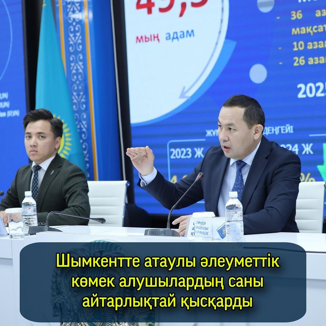 Шымкент қаласында 2025 жылдың алғашқы тоқсанында мемлекеттік атаулы әлеуметтік көмек 4 182 аз қамтылған отбасындағы 22 215 адамға тағайындалды. Бұл өткен жылмен салыстырғанда атаулы әлеуметтік көмек алушылар санының 35,1 пайызға азайғанын көрсетеді. Мұндай оң динамика жұмыспен қамту шараларының нәтижесімен тығыз байланысты. Бұл туралы Шымкент қаласы әкімдігінің ресми өкілі, қала әкімінің орынбасары Сәрсен Құранбек баспасөз брифингте айтты.