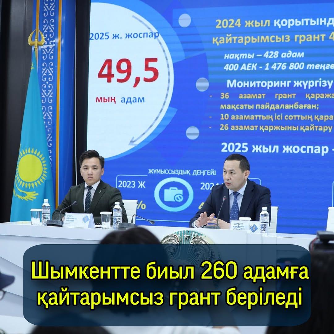 Шымкентте биыл 260 адамға қайтарымсыз грант беріледі