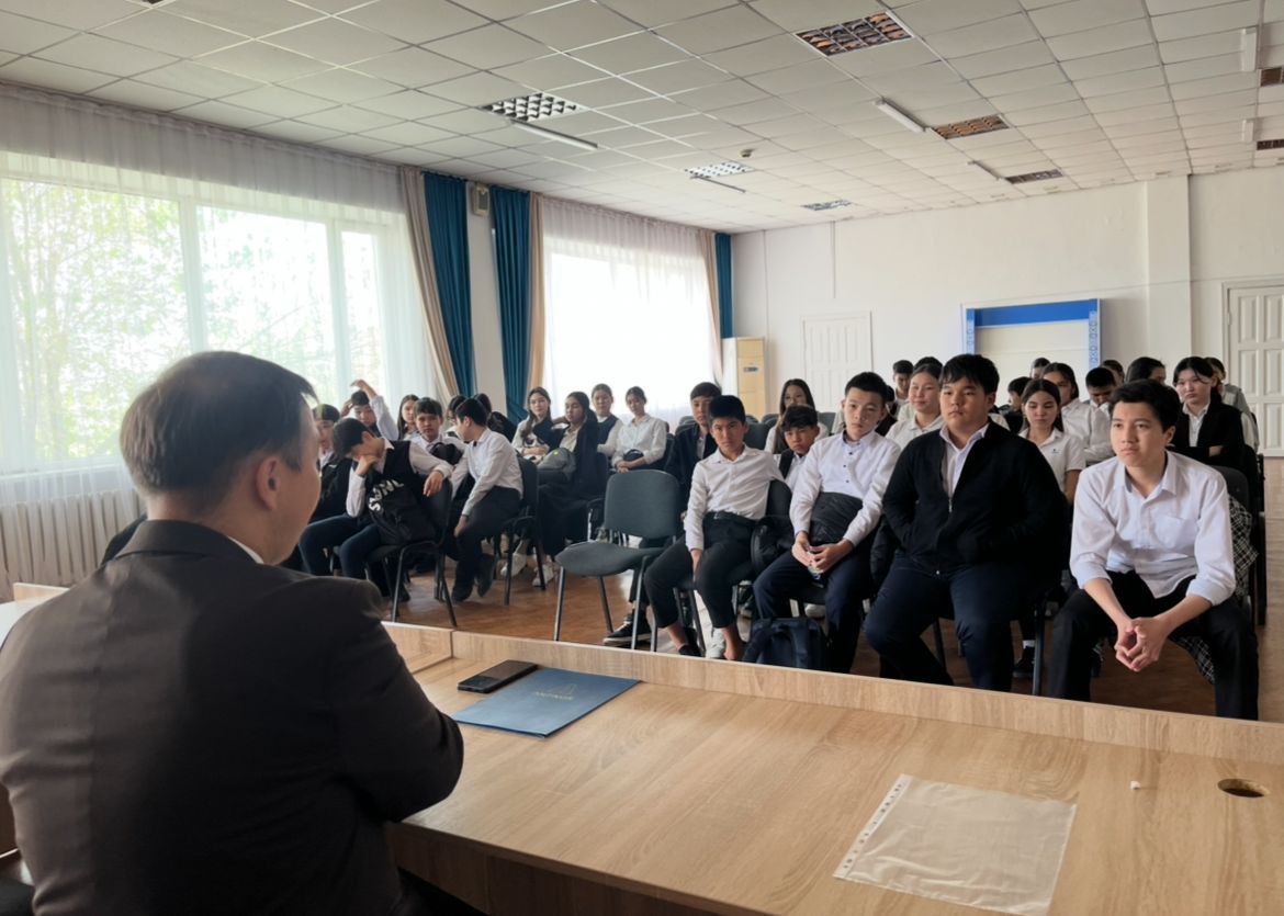 «Заң және Тәртіп» идеясын түсіндіру аясында «Тәртіпті өзіңне баста!» тақырыбында №53 орта мектептің жоғары сынып оқушыларымен кездесу өтті. Кездесудің басты мақсаты адалдық, парасаттылық, әділдік, сондай-ақ құқық тәртібі қағидаларын, заңдарды сақтаудың және қоғамдық тәртіпті қамтамасыз етудің маңыздылығын жеткізу.