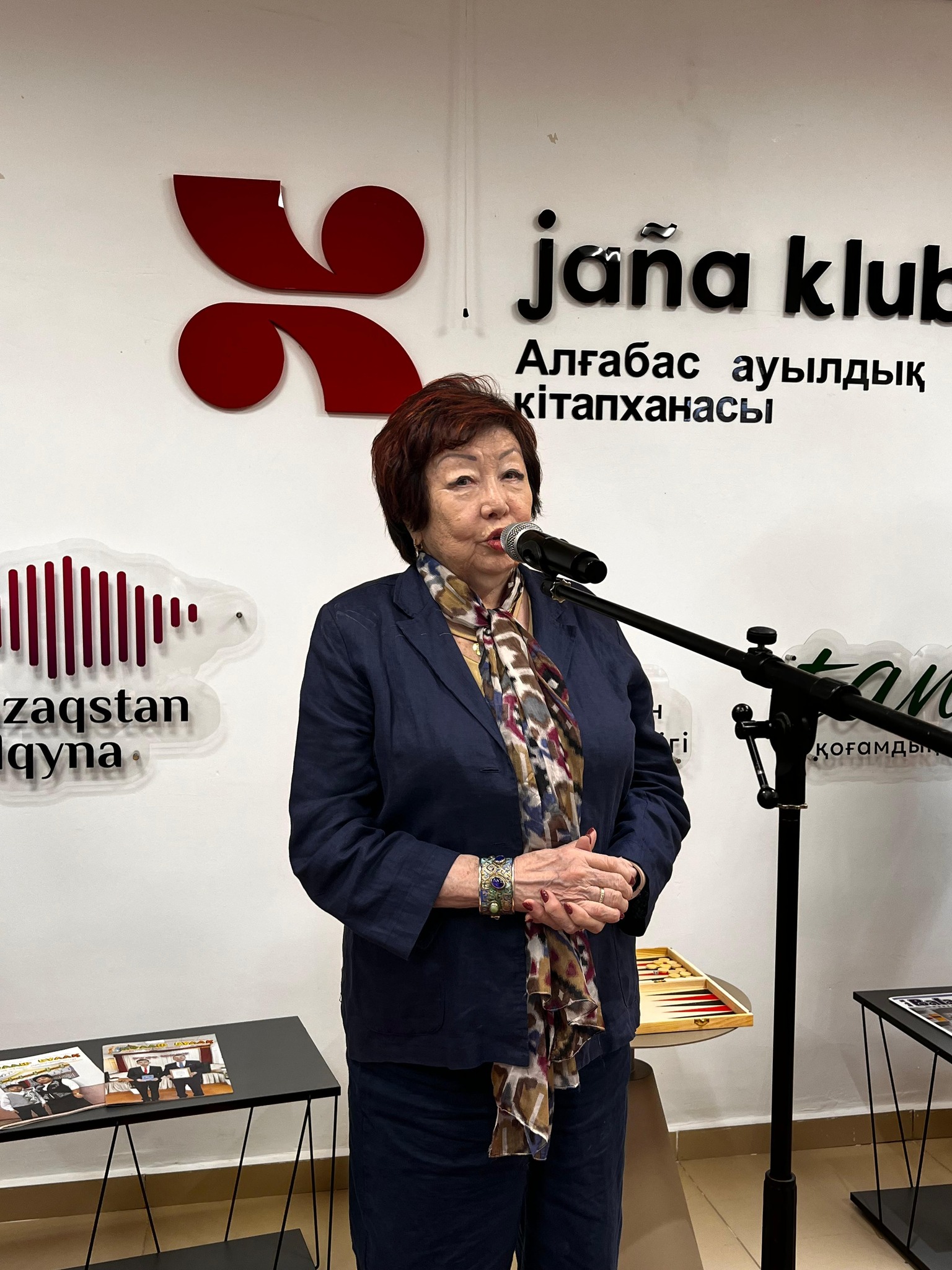 Қатысушылар кітапхана оқырмандары атынан дайындалған Ақұштап Бақтыгерееваның сөзіне жазылған ән, өлең жолдарын тамашалап, кітапхана ішімен танысты.