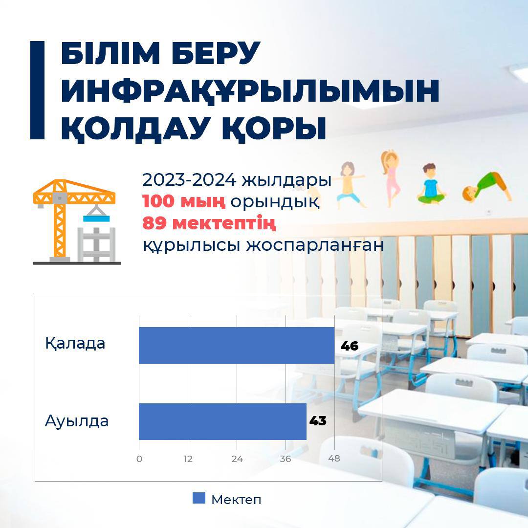 Мектеп құрылысын жүргізу және реновациялау бойынша ауқымды бастамаларды іске асыру білім алу жағдайларын жақсартуға ықпал етеді, сондай-ақ білім жүйесін тұрақты дамытуға, қалалар мен ауыл мектептері арасындағы сапа айырмашылығын азайтуға мүмкіндік береді.