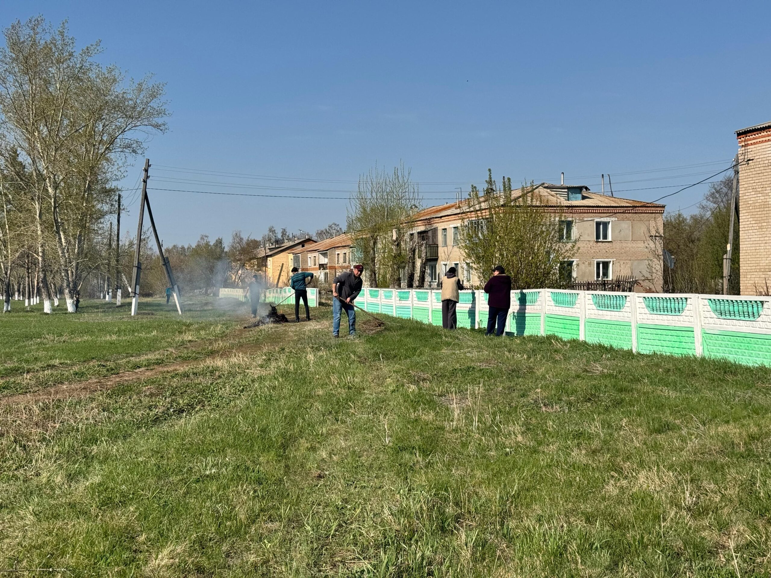 Дәстүрлі «Таза бейсенбі» күніне орай өткізілген сенбілікке шамамен 80 адам қатысты. Іс-шара барысында құрғақ шөптер өртеліп, қоғамдық аумақтар тазартылып, ағаштар әктелді.