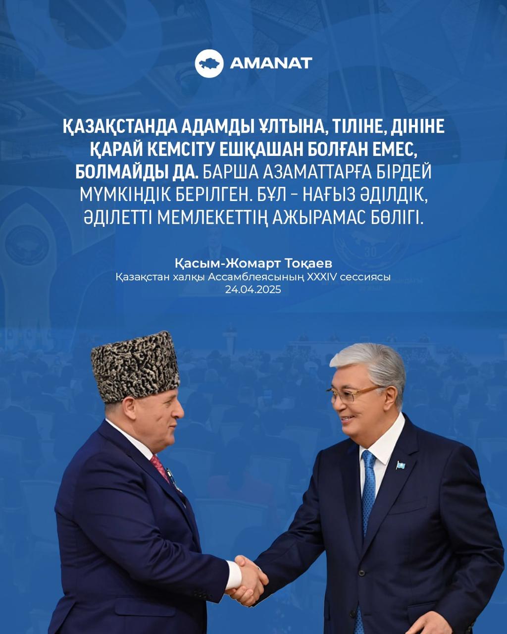Президент өз сөзінде Қазақстан халқы Ассамблеясының еліміздегі бірлік пен теңдіктің, тұрақтылық пен тыныштықтың символына айналғанын баса айтты. Қ.Тоқаев «Бүгінгі басқосудың тарихи мән-маңызы айрықша. Биыл Қазақстан халқы Ассамблеясының құрылғанына 30 жыл толып отыр. Осы уақыт ішінде Ассамблея қоғамдағы тұрақтылық пен келісімді нығайтуға өлшеусіз үлес қосты» деп атап өтті.