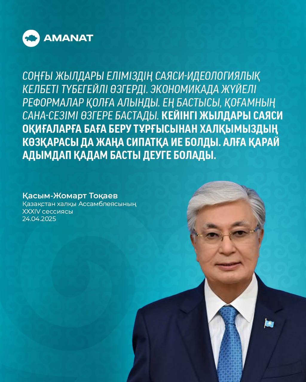 Мемлекет Басшысы Қ.Тоқаевтың Қазақстан халқы Ассамблеясының ХХХІV сессиясында сөйлеген сөзінің толық мәтінімен келесі сілтеме бойынша танысуға болады: