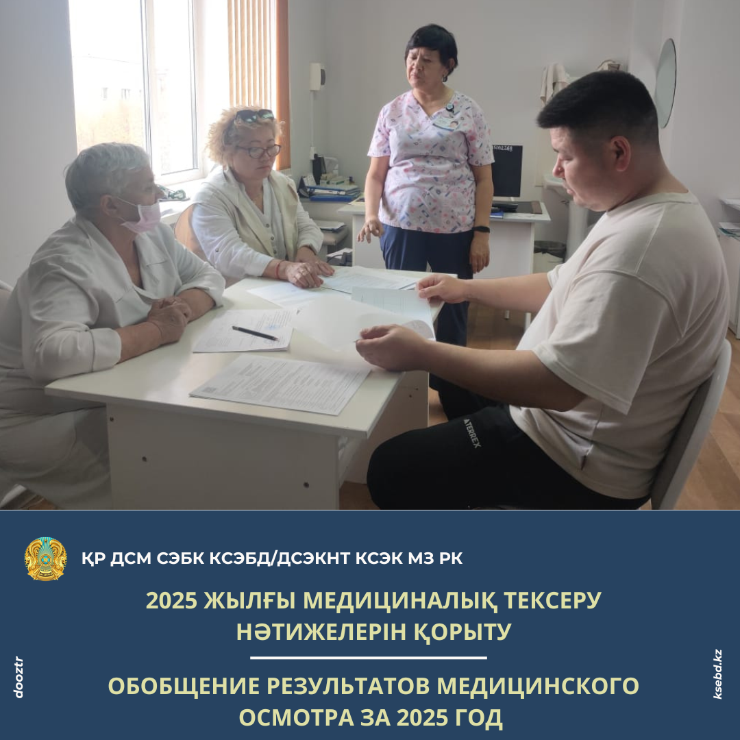 Қорыту нәтижесі бойынша мамандар медициналық қарап-тексерудің толық қамтылуына, сапасы мен уақтылы өткізілуіне, және де қорытынды актіні дайындауды жақсарту бойынша сындарлы ұсыныстар берді. Отырыс барысында мерзімді міндетті медициналық тексерулер жүргізу қағидалары бойынша ақпараттық-түсіндіру жұмыстары жүргізілді.
