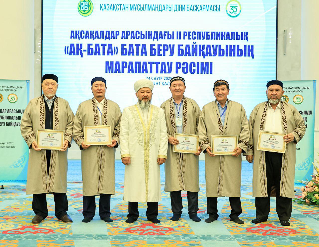 Қазақстан мұсылмандары діни басқармасының төрағасы, Бас мүфти Наурызбай қажы Тағанұлы және Шымкент қаласы әкімінің орынбасары Сәрсен Абайұлы Құранбек Шымкент қаласында ақсақалдар арасында өткен ІІ республикалық бата беру байқауының марапаттау рәсіміне қатысты.