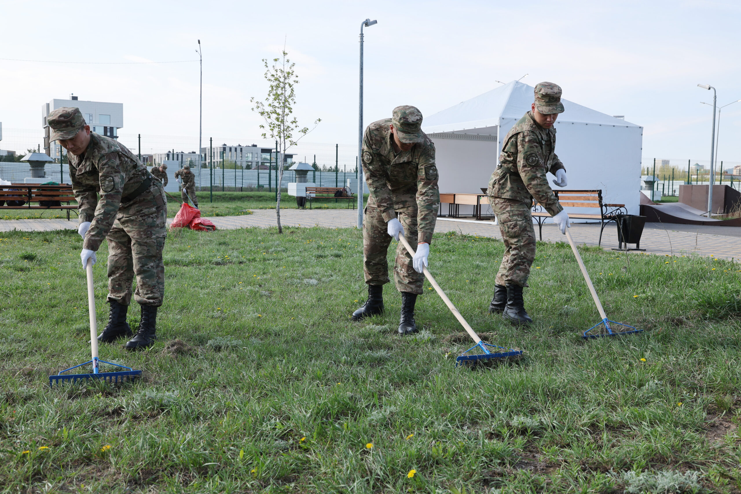 «Таза Қазақстан» экологиялық акциясы аясында ҚР ІІМ Ұлттық ұланның Бас қолбасшылығының әскери қызметшілері мен 6636 әскери бөлімінің сарбаздары игі іске атсалысты. Елорданың Байқоңыр ауданы әкімдігінің қолдауымен ұйымдастырылған іс-шарада әскерилермен бірге жастар қозғалысы өкілдері мен студенттер де болды.