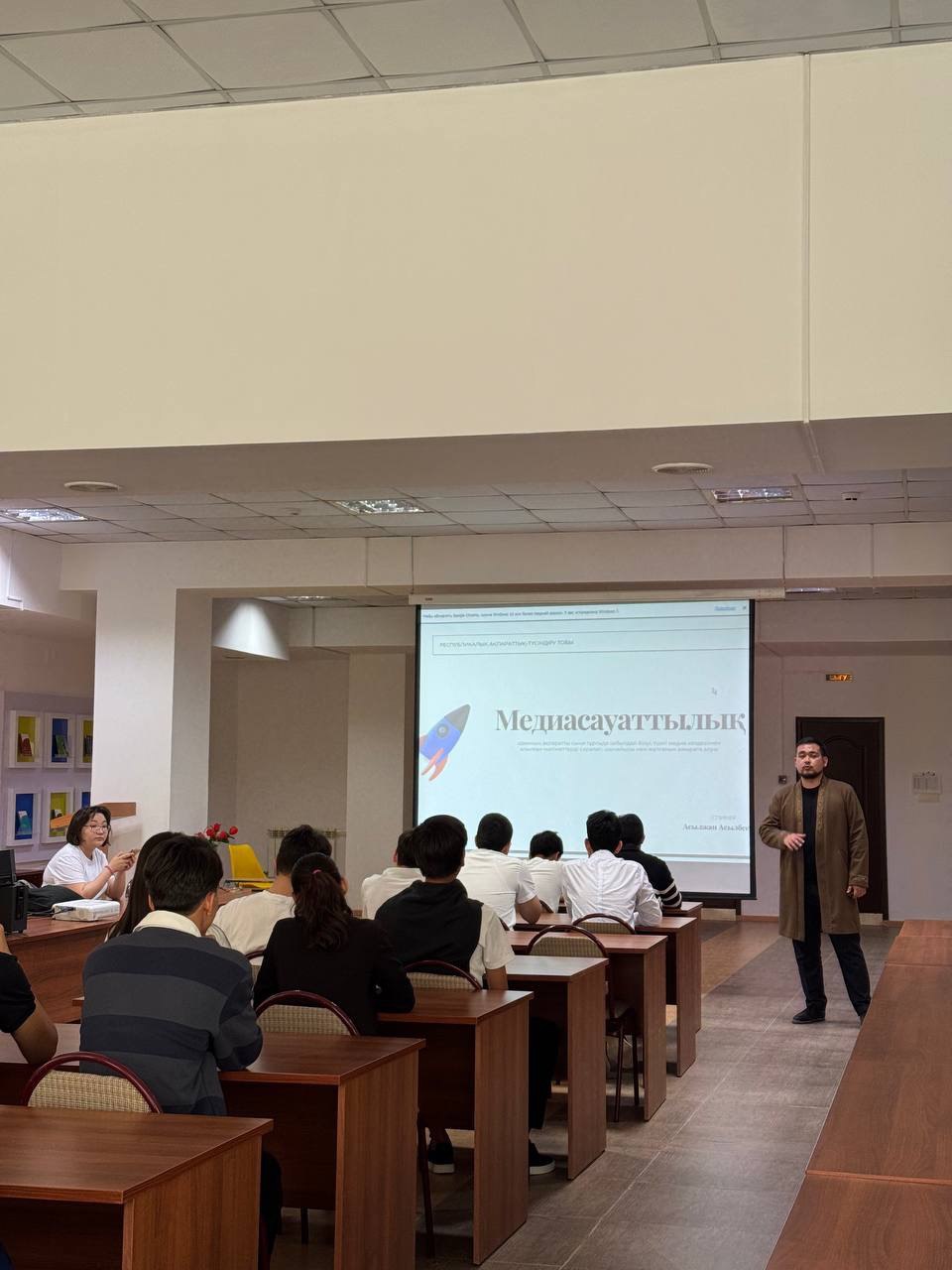 Іс-шара барысында медиа кеңістіктегі жалған ақпараттар, фейк жаңалықтар мен деструктивті идеологиялардың таралу жолдары, сондай-ақ оларға қарсы тұрудың тиімді әдістері түсіндірілді. Теміралиев Асылжан қазіргі таңда ақпарат тасқынының қарқынды жүріп жатқанын, сондықтан әрбір азамат, әсіресе жастар, медиа құралдарымен жұмыс істеуде сын тұрғысынан ойлай білуі қажет екенін атап өтті.