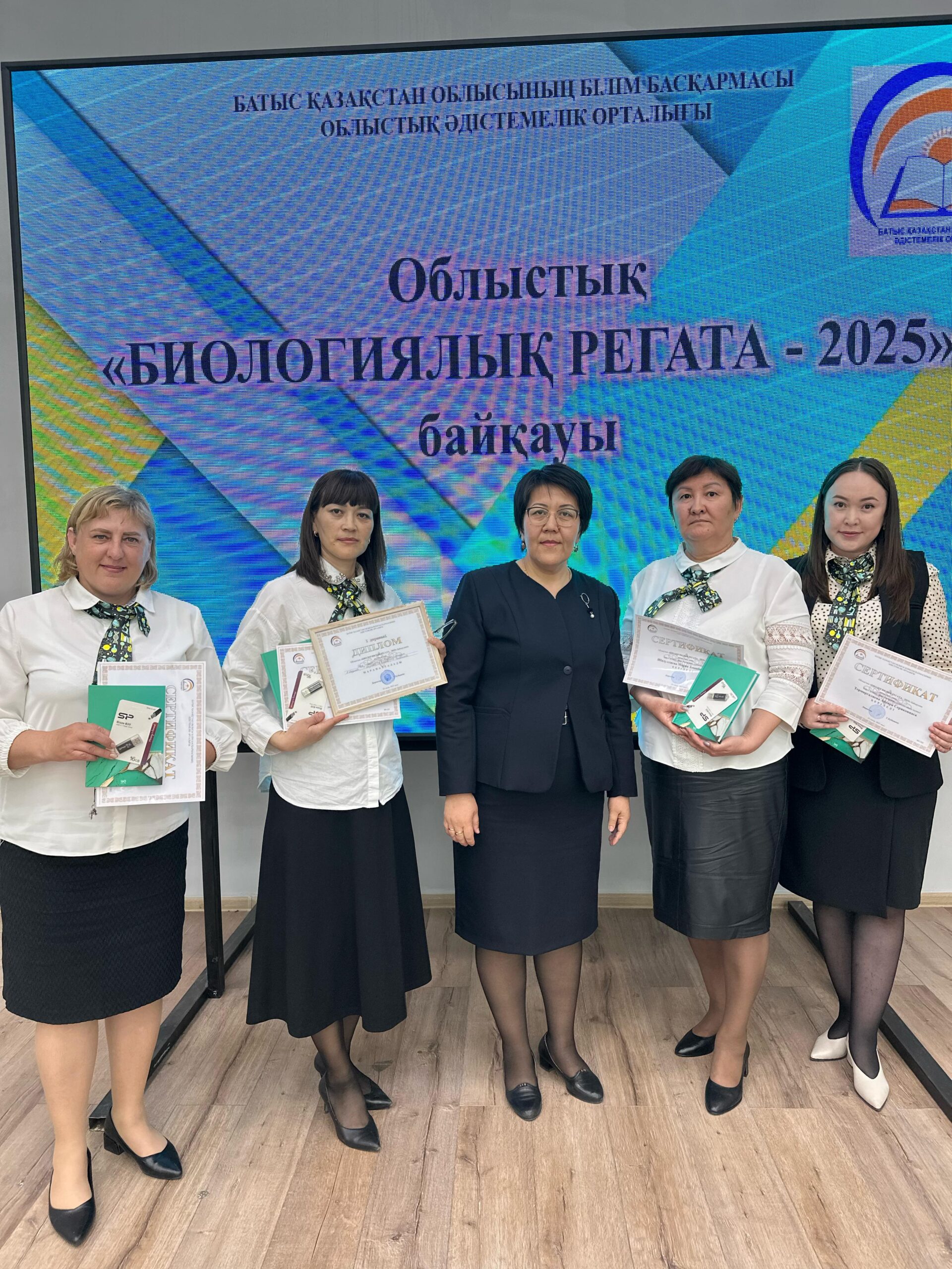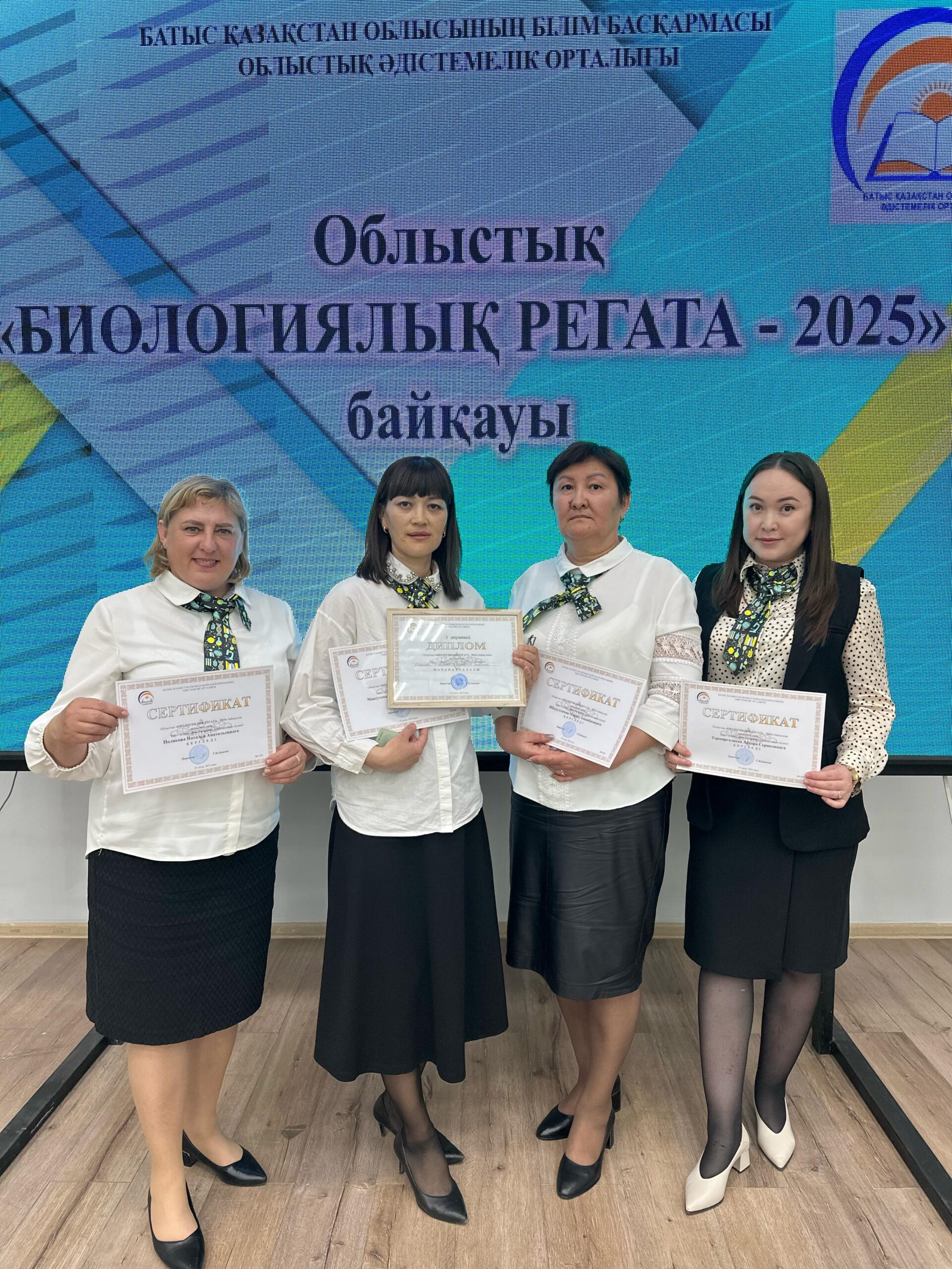 Бүгін Облыстық әдістемелік орталықтың ұйымдастыруымен облыстық “Биологиялық регата-2025” байқауы өтті. Мақсаты: биология пәнінен педагогтің кәсіби қызметінде жоғары нәтижелерге жетуде ұмтылысын аттыру, мәртебесін көтеру және қолдау. Оған 4 мұғалімнен тұратын команда қатысты. Ибадуллаева М.А, №4 ЖОББМ, Темиргалиева А.С, №8 ЖОББМ, Максутова Г.А, №6 МЛ, Полякова Н.А, №2 ЖОББМ. Байқау қорытындысы бойынша Бөрлі ауданының «Био Navigator» командасы жүлделі🥇І орынды иеленді.