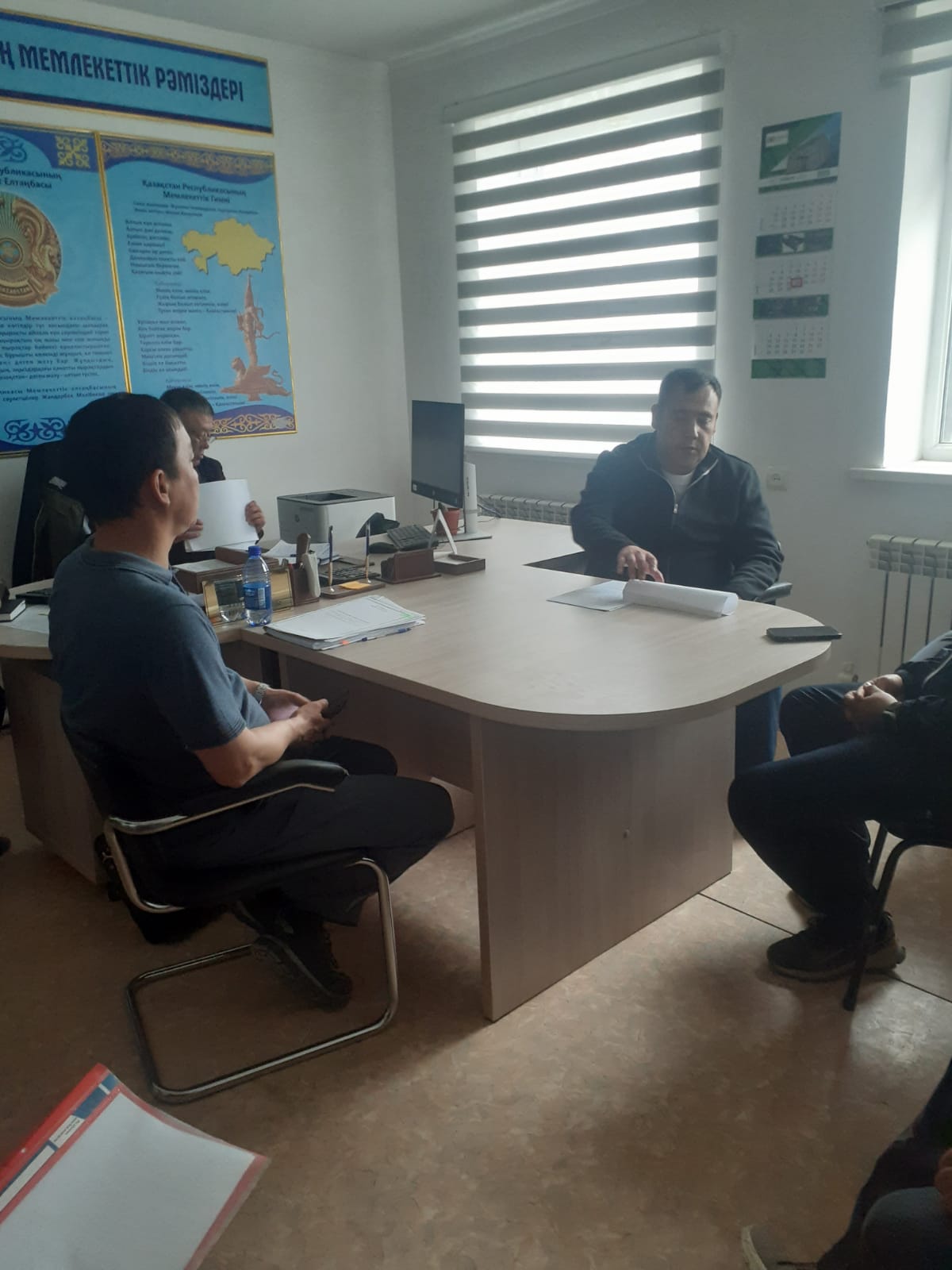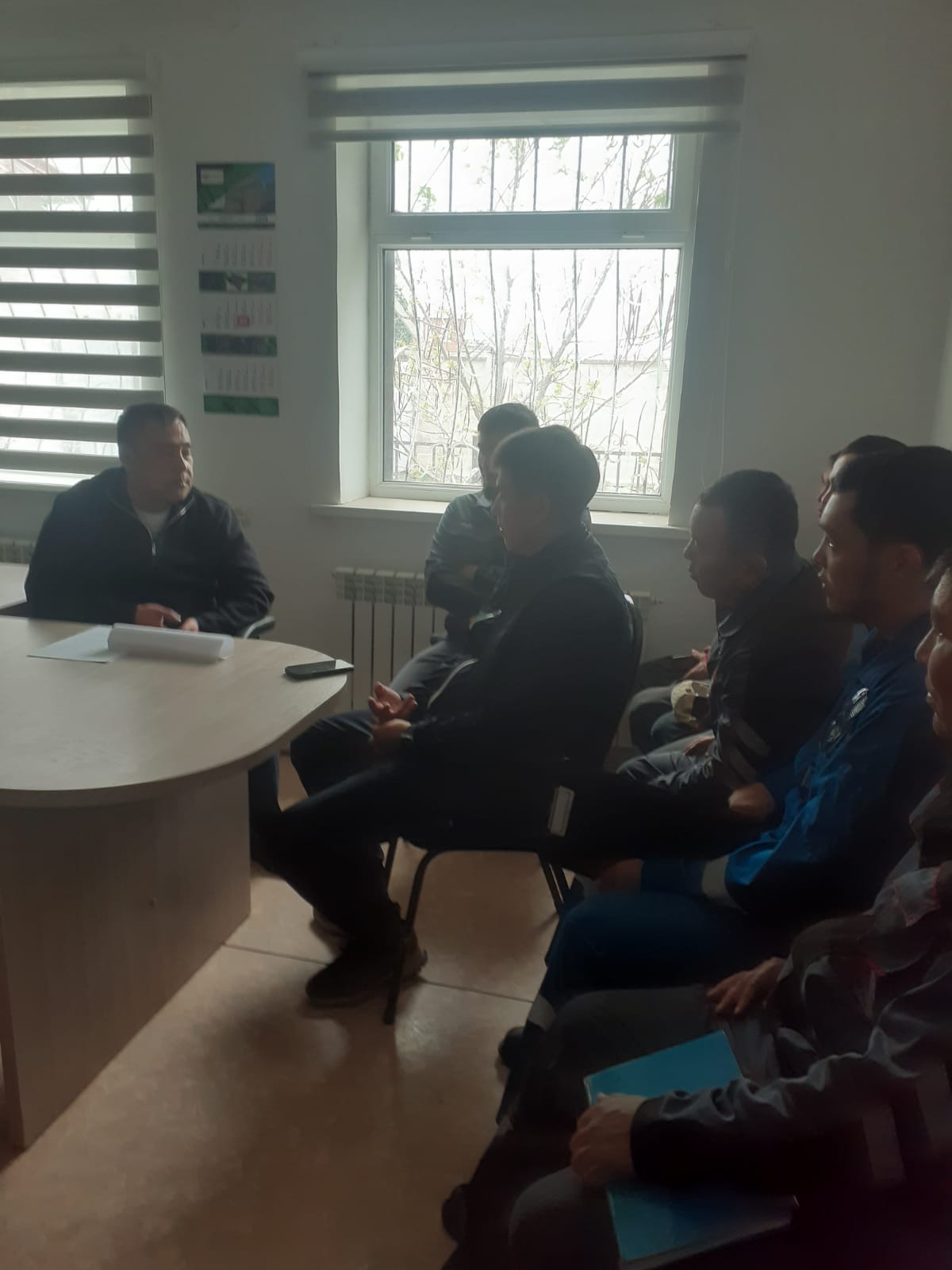 Кездесу барысында мемлекеттік еңбек инспекторы Ж.Ураков еңбек қауіпсіздігі бағытында еңбек заңнамасының талаптары бойынша құқықтық түсіндірме беріп, жұмысшылардың сауалдарына жауап берді.