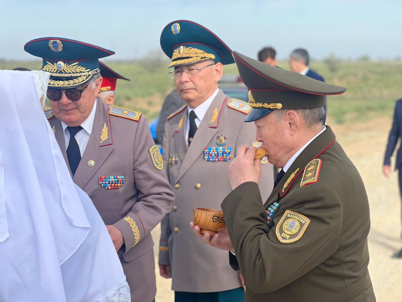 Ұлы Жеңістің 80 жылдығы қарсаңында ауданымызға ат басын тіреген «Генералдар кеңесі» республикалық қоғамдық бірлестігінің төралқа төрағасы, Ішкі істер министрлігінің өкілі, генерал-лейтенант Бексұлтан Сәрсеков, төралқа төрағасының орынбасары, Астана қаласындағы филиал басшысы, Ұлттық қауіпсіздік комитетінің өкілі, генерал-майор Өміртай Бітімов, төралқа мүшелері, Ұлттық қауіпсіздік комитетінің өкілдері, генерал-майор Мұстафа Махамбет пен Шаймұрат Отарбаев, Ұлттық Ұлан өкілі, генерал-майор Әлібек Сералиев, Ішкі істер министрлігінің өкілі, генерал-майор Төлеген Рақымжанов, «Генералдар кеңесі» республикалық қоғамдық бірлестігінің жауапты хатшысы Талғат Қаналиев, «Олжа» акционерлік қоғамы директорлар кеңесінің төрағасы Сұлтан Неталиевтер аудан орталығындағы Қару аманаты саябағында жергілікті тұрғындармен жүздесіп, соғыс құрбандарын бір минуттық үнсіздікпен еске алып, қаһармандар ескерткішіне гүлшоқтарын қойды.