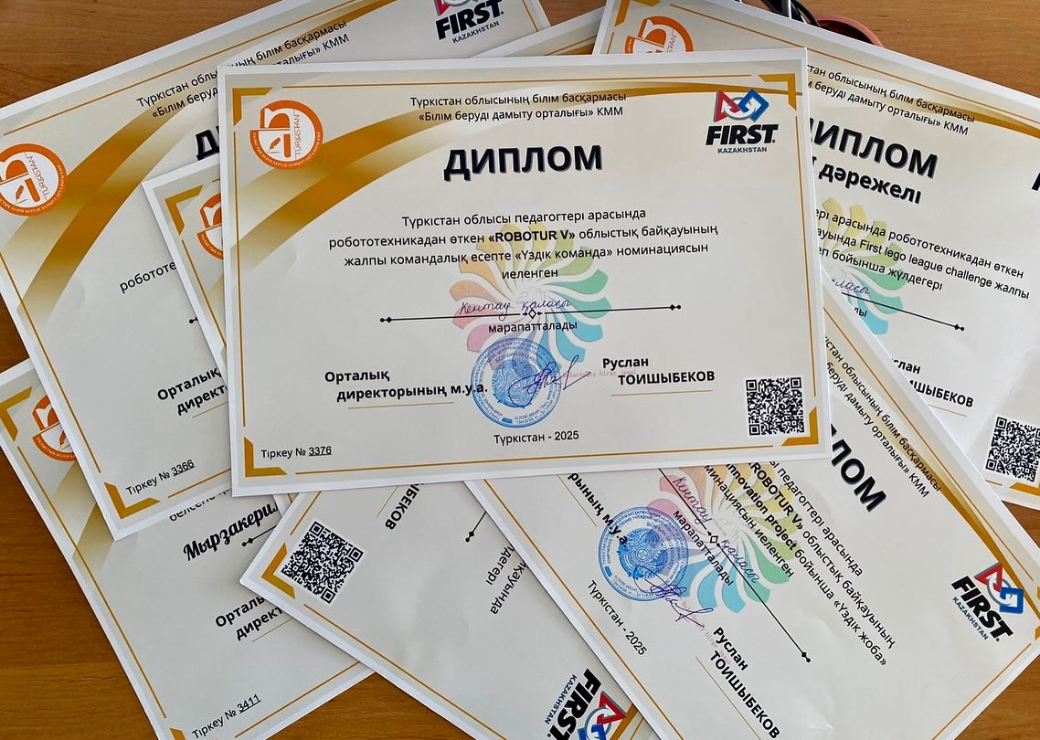Түркістан облысы білім басқармасы “Білім беруді дамыту орталығы” КММ ұйымдастыруымен өткен 17 аудан-қала педагогтері арасында “Robotur V” облыстық робототехника байқауы өтті.