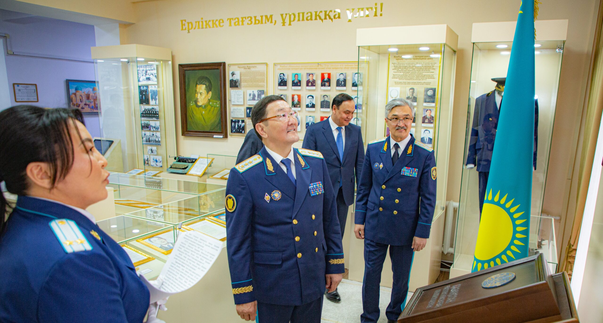Рәсім «Заңдылық-Құрмет-Қорғау» музей бұрышын таныстырумен басталды, бұл құқық тәртібіне құрмет пен Ұлы Отан соғысы жылдарында және бейбіт уақытта елімізді қорғаған жандарды еске алудың символына айналды.