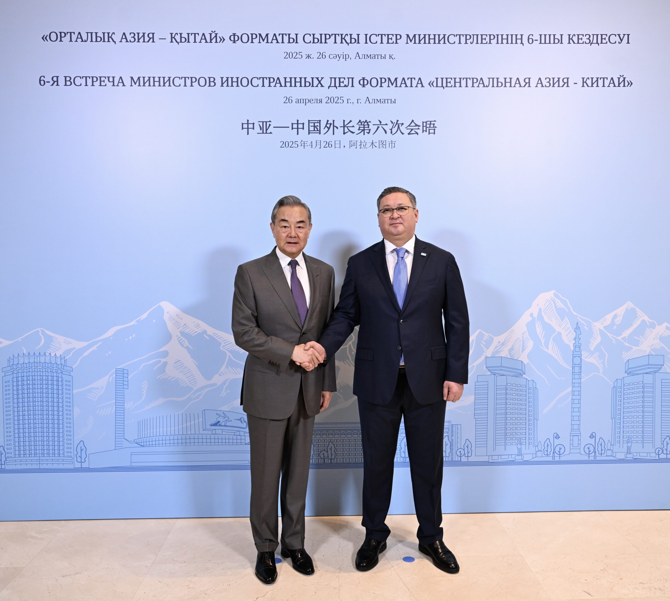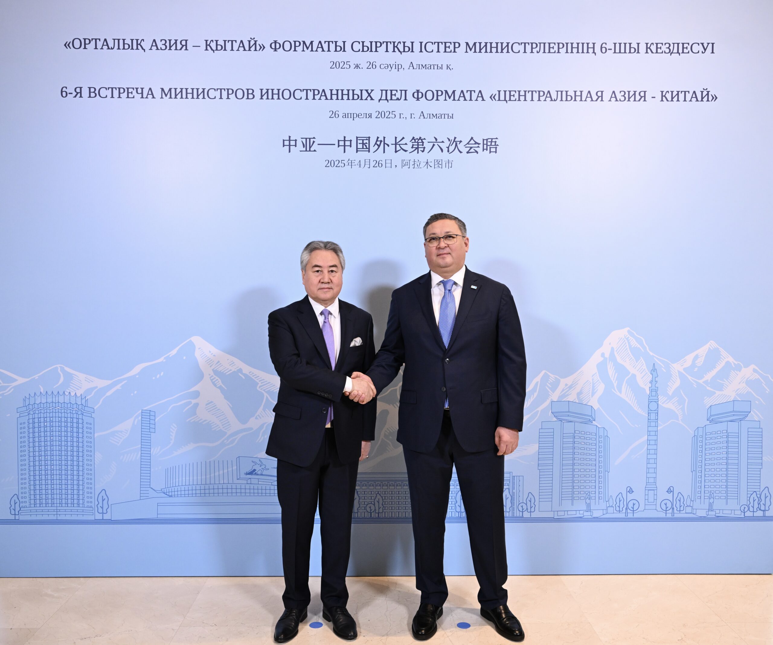 Алматы, 2025 жылғы 26 сәуір – Алматыда «Орталық Азия – Қытай» форматындағы сыртқы істер министрлерінің 6-шы кездесуі өтті. Оған Қазақстан Сыртқы істер министрі Мұрат Нұртілеу, Қытай Сыртқы істер министрі Ван И, Қырғызстан Сыртқы істер министрі Жээнбек Кулубаев, Тәжікстан Сыртқы істер министрі Сироджиддин Мухриддин, Өзбекстан Сыртқы істер министрі Бахтиёр Саидов және Түрікменстан өкілі қатысты.