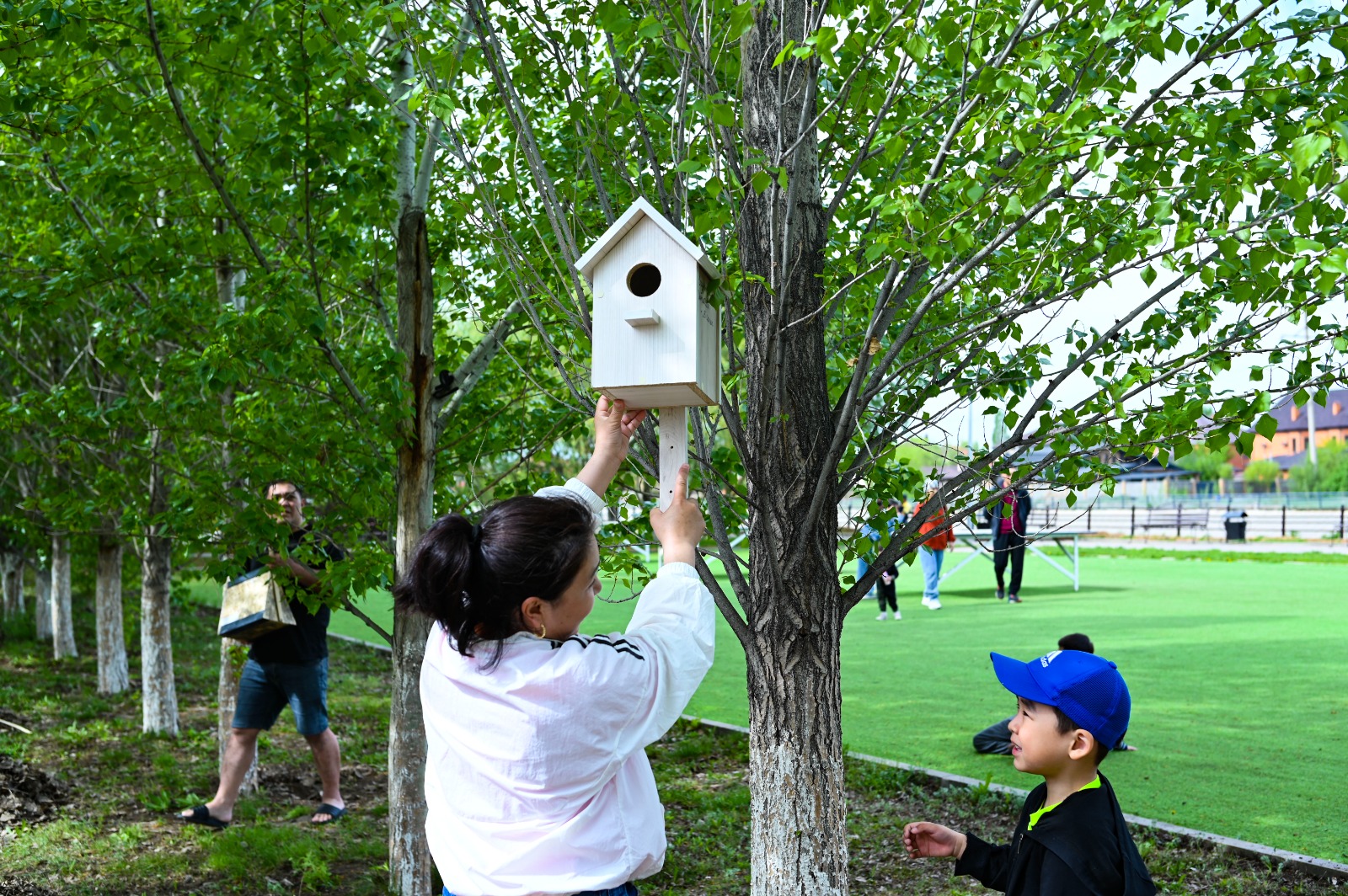 «Мектебімізде осыдан үш жыл бұрын «Аналар мектебі» құрылған болатын. Ата-аналардың мұндағы мақсаты — тәрбие ісін ұстаздармен бірлесе жүргізуге барынша ден қою. Осы орайда үнемі түрлі бастамаларға, пайдалы істерге ұйытқы болып жүретін ата-ана көп. Бүгінгі бастаманы біз, мектеп ұжымы, өз тарапымыздан қолдадық. Барлығы 70 ұя жасалды. Бір бөлігі — мектеп ауласына, одан соң Тәуелсіздік даңғылы бойындағы ағаштарға орнатылды. Бүгін тағы бір тобын осы саябаққа әкелдік», — деді мектеп директоры Гүлнара Нарымбетова.