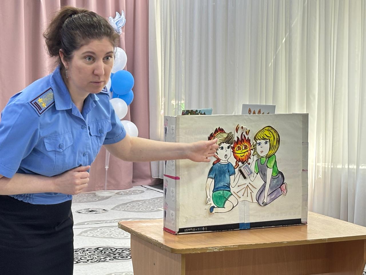 Ұлдар мен қыздарға ТЖД мамандары өрттің пайда болуын болдырмау үшін ережелерді сақтау қаншалықты маңызды екенін және егер ол түтінді бөлмеде болса, өзін қалай дұрыс ұстау керектігін айтты.