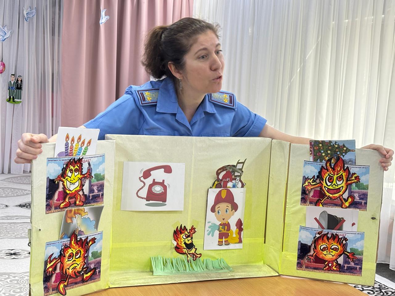 Мемлекеттік өрт бақылау басқармасының мамандары балабақша тәрбиеленушілеріне өрт қауіпсіздігі негіздері бойынша қызықты және танымдық іс-шара дайындады. Балаларға “сіріңке – балаларға ойыншық емес”, отпен ойнау қауіпті, ал қараусыз өрт қатыгез жауға айналуы мүмкін екенін түсіндірді.