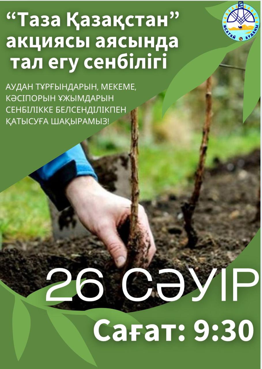 “Таза Қазақстан” акциясы аясында тал егу сенбілігі өтеді