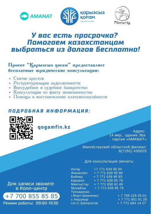 ✅ Біз сізге қарызды реттеуге және қаржылық қиындықтан шығуға ТЕГІН Заңгер көмегін ұсынамыз.