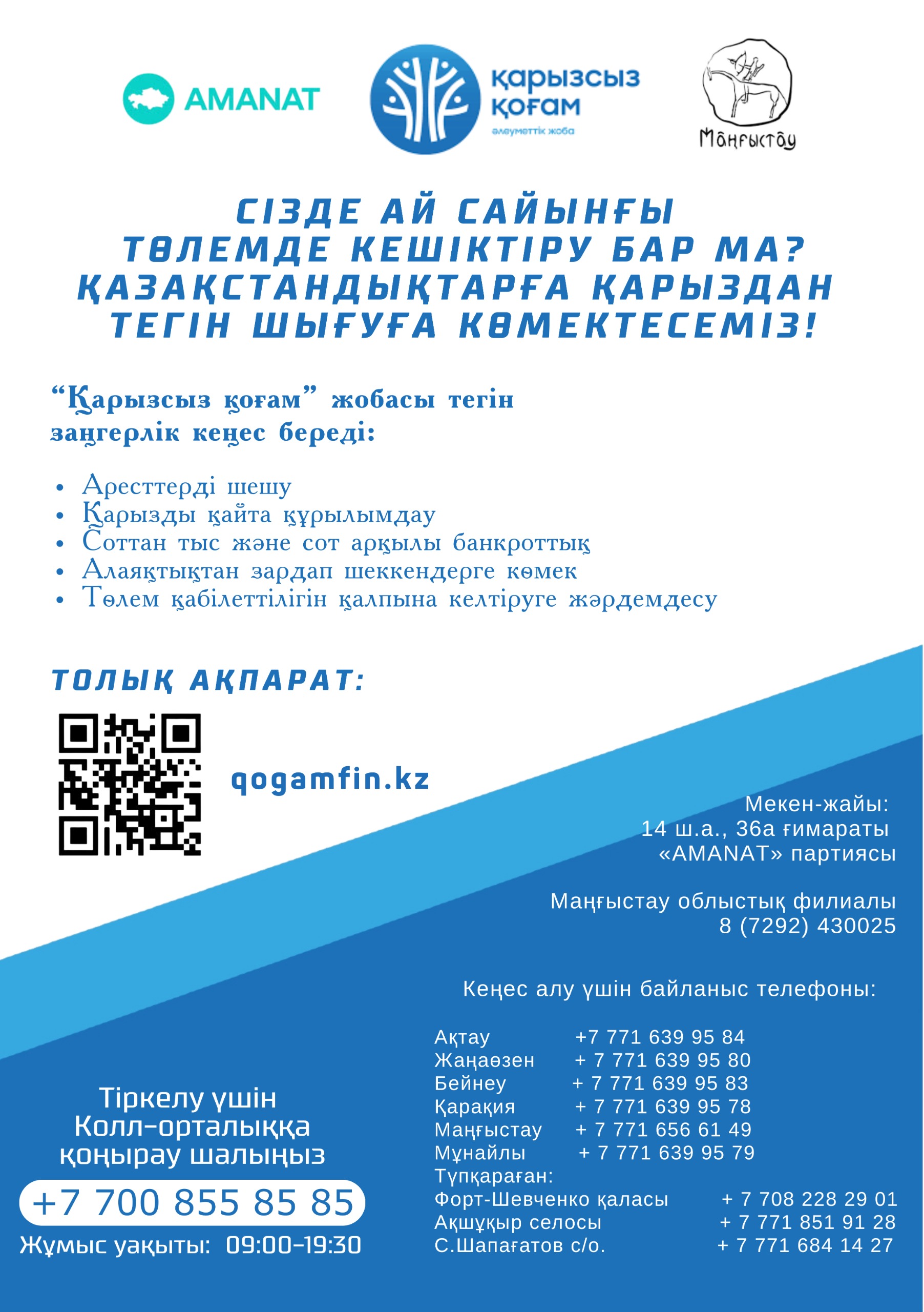 Маңғыстау облысы қала және ауыл тұрғындарына, « Қарызсыз қоғам 2.0 » жобасының Старты басталғаны туралы хабарлаймыз!