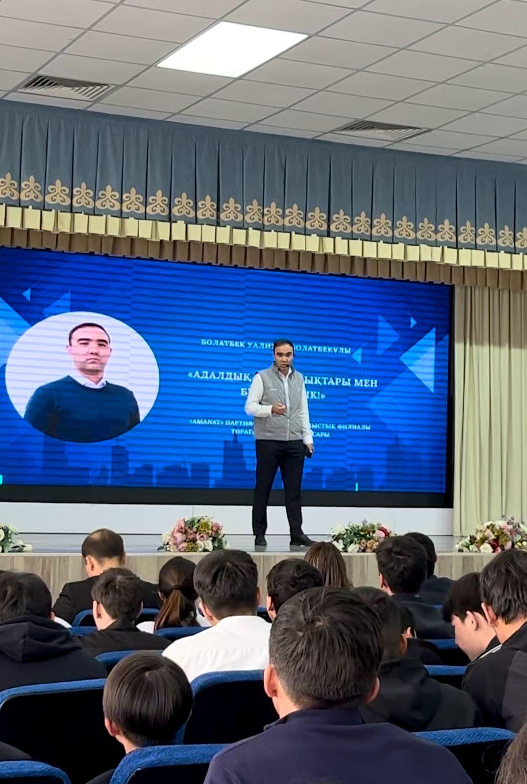 ҚР Сыбайлас жемқорлыққа қарсы іс-қимыл агенттігінің Жамбыл облысы бойынша департаменті басшысының бірінші орынбасары Д.Омаров өз сөзінде адалдық принциптерін ұстану – жетістіктерге жетудің негізгі жолы екенін жеткізіп, жастарды сапалы білім алуға болуға және адал табыс тауып, ел дамуына үлес қосатын парасатты тұлға болуға шақырды.