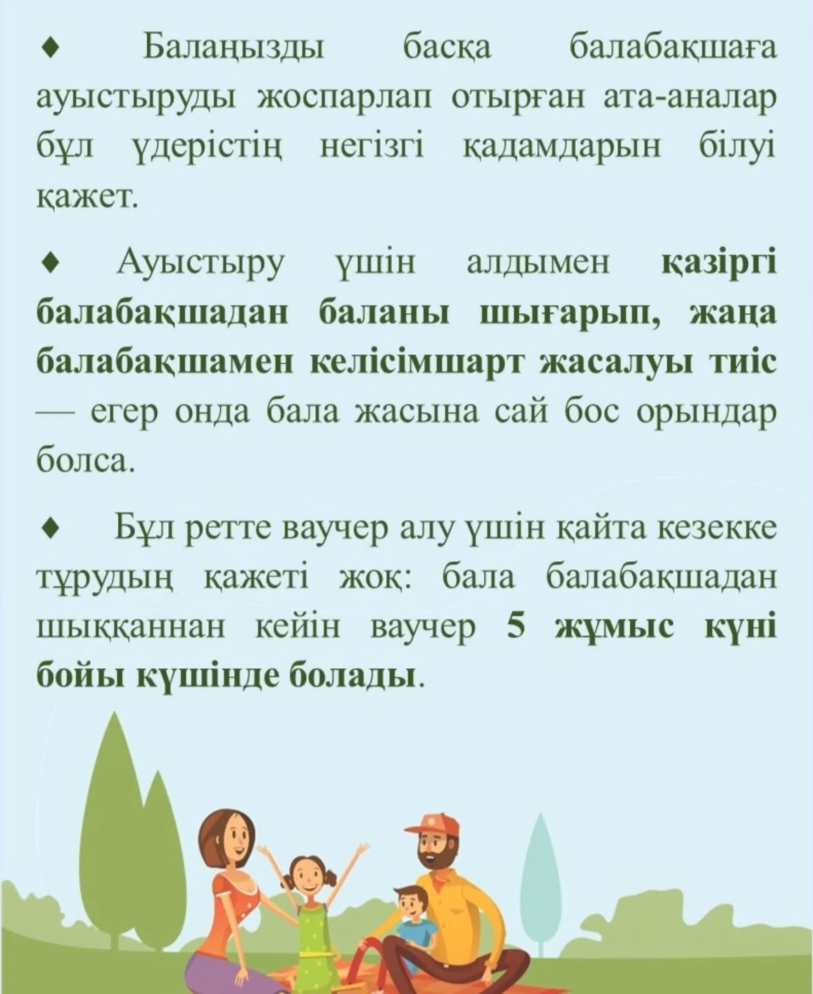 Баланы басқа балабақшаға ауыстыру тәртібі жөнінде туралы