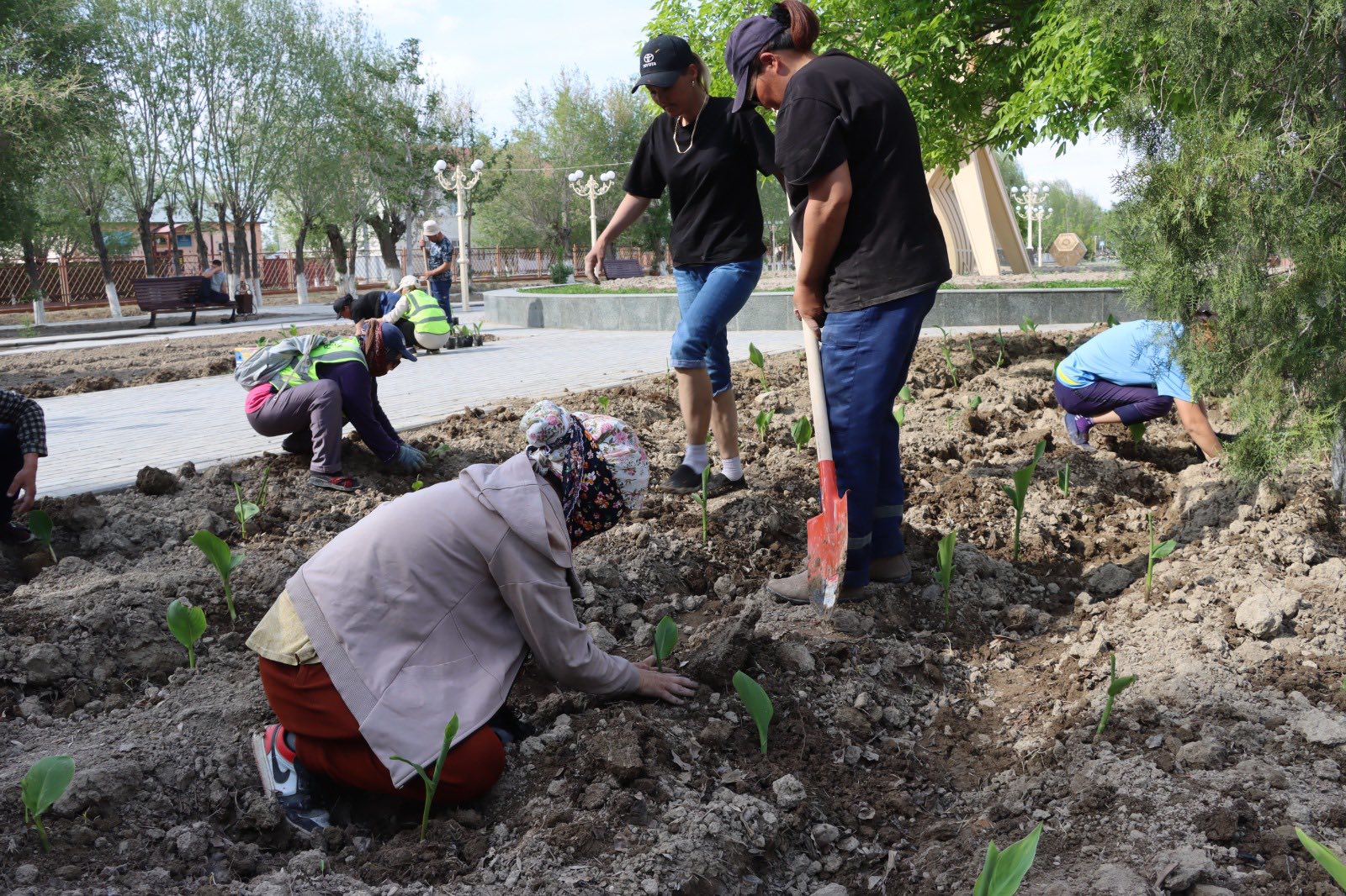 Орталық алаң мен демалыс орындарына түрлі-түсті, сәндік гүлдер отырғызылуда. Гүлдердің түр-түсі ауданымызға ерекше сән беріп, көркем бейне қалыптастырары сөзсіз. Бұл жұмыстар тұрғындарымыздың жайлылығы мен ауданның экологиялық ахуалын жақсартуға бағытталған.