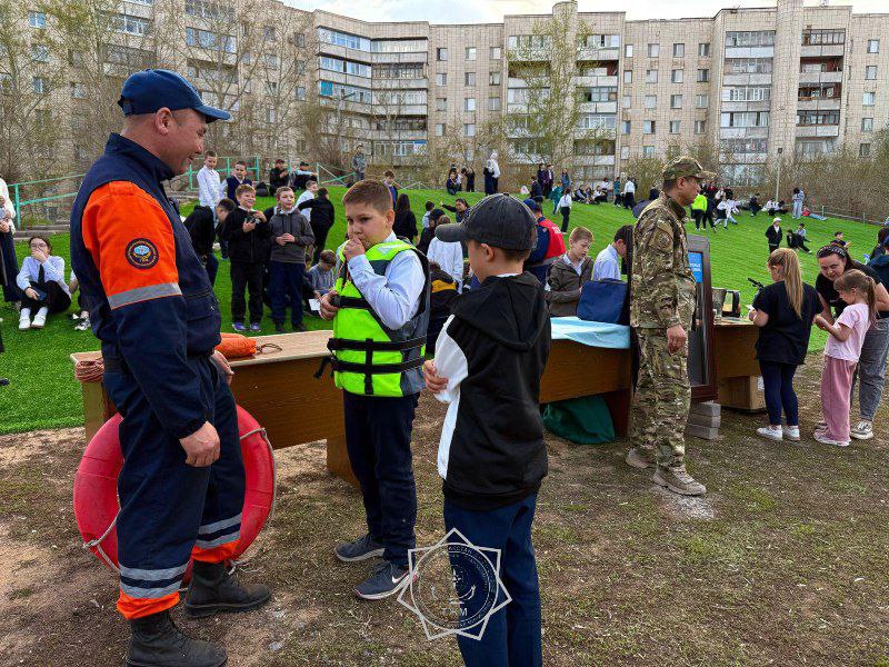 Балалар құтқарушылармен бірге жаттығу жасап, кинологтардың иттермен қалай жұмыс істейтінін бақылады. Ата-аналарға да қауіпсіздік ережелері бойынша пайдалы кеңестер берілді.